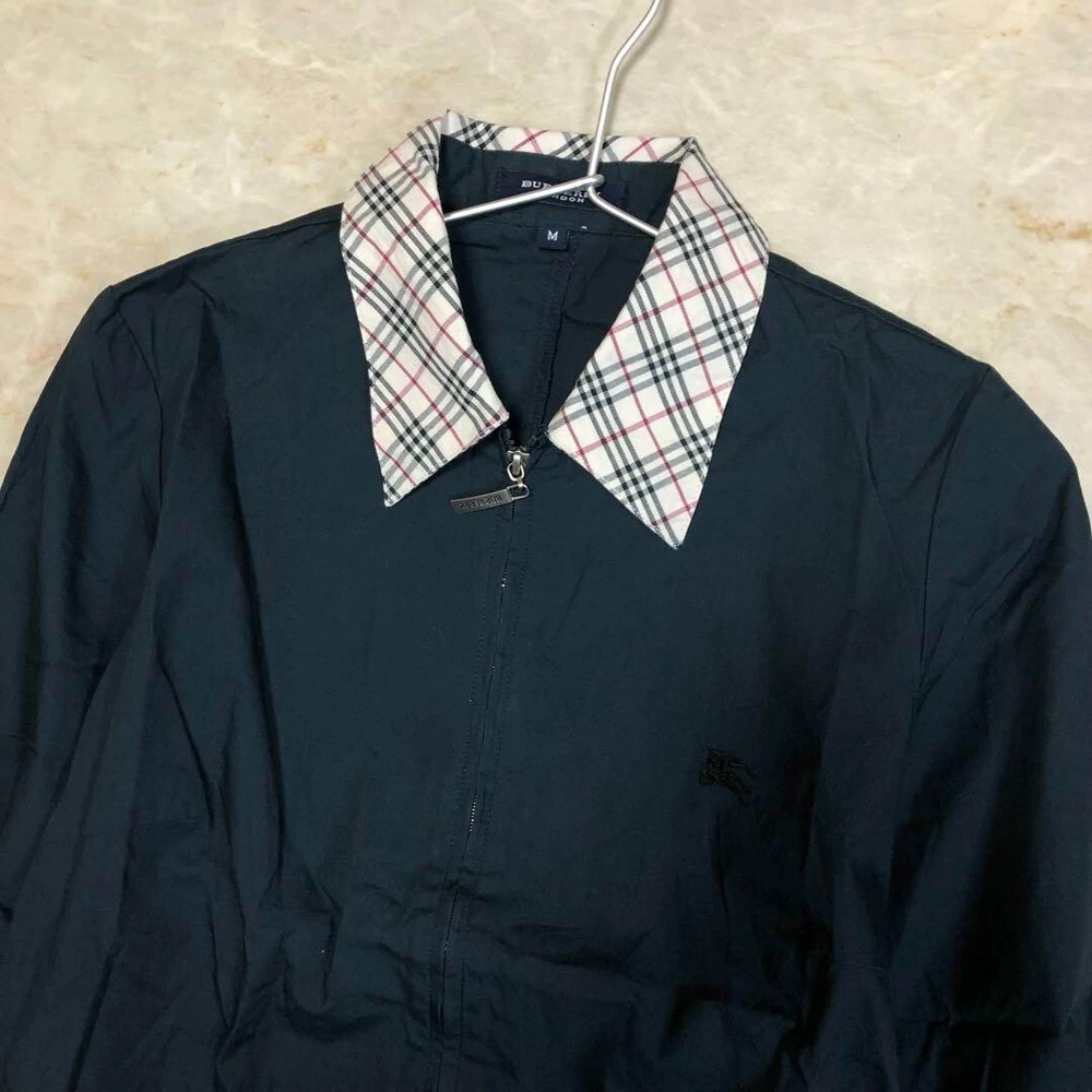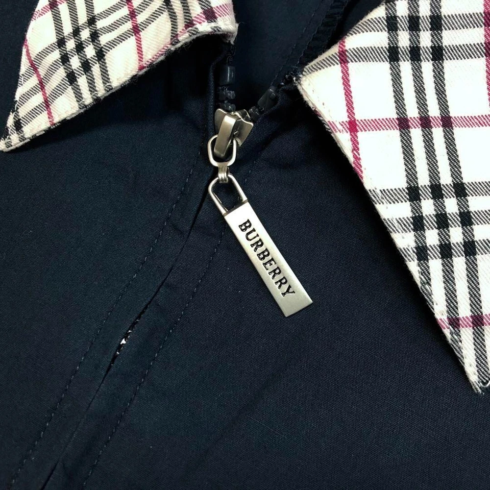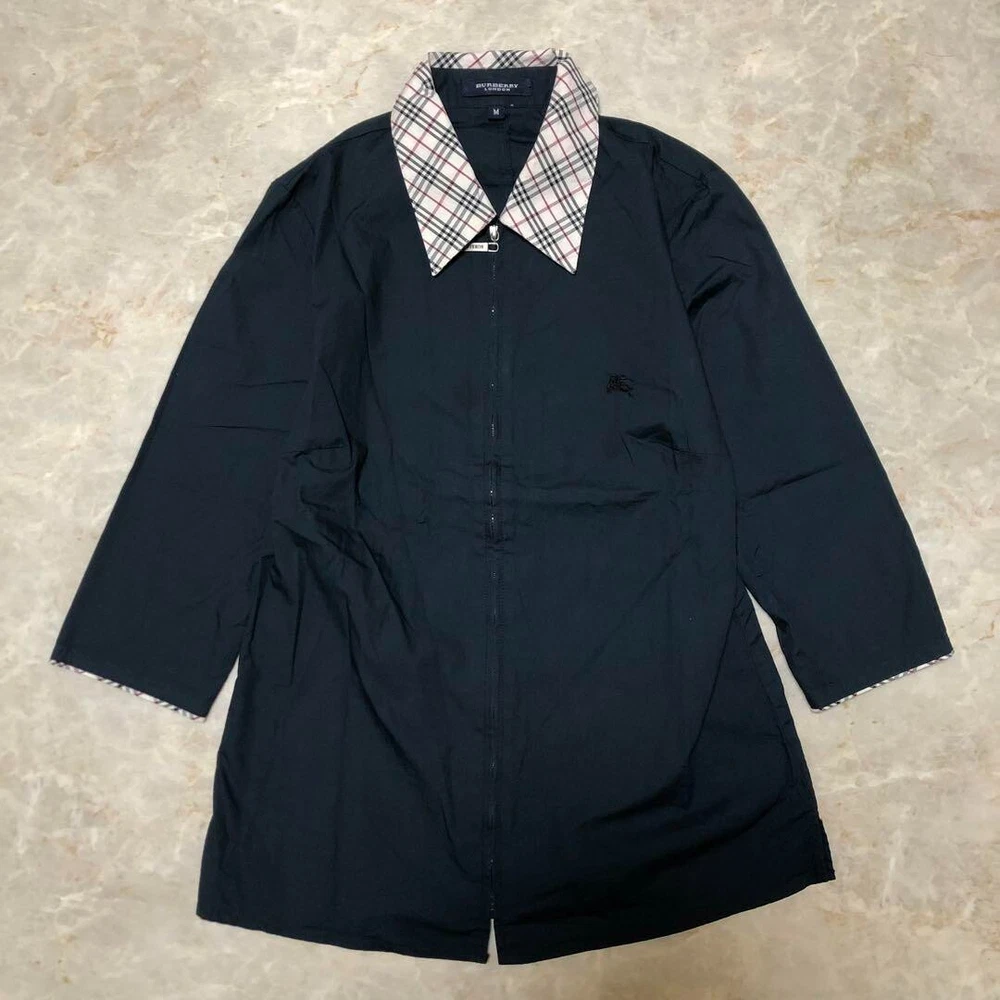 Burberry Nova Check Navy 3/4 Sleeve Shirt Jacket Full zip Women Size M Used