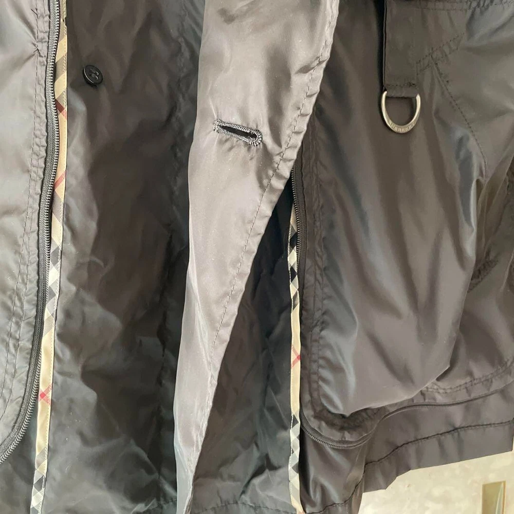 Lining Material: NA Occasion: Business, Casual, Formal, Travel gtin13: Does not apply Insulation Material: NA UPC: Does not apply MPN: NA Theme: NA Style: Rain Coat Features: Belted, Collared Handmade: No Size Type: Regular Fabric Type: NA Personalize: No Jacket/Coat Length: NA Color: Black Closure: Button Season: Fall, Spring, Winter Vintage: No Sleeve Length: Long Sleeve Accents: Button Outer Shell Material: Nylon Type: Coat Department: Women Brand: Burberry Model: NA Size: 38 Fit: Slim Pattern: Check