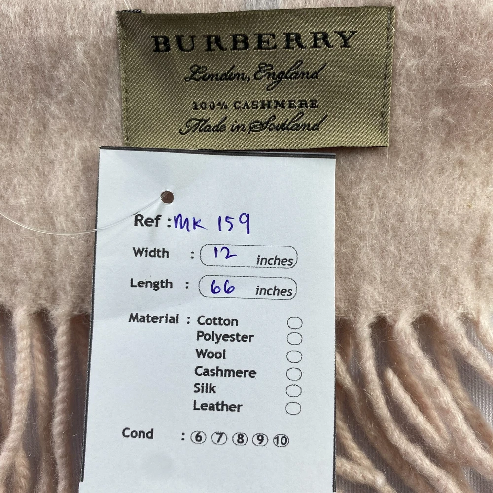 Character: Hippie, Skater Girl, None Color: Multicolor Personalize: No Brand: Burberry Pattern: Check Type: Scarf MPN: Does Not Apply Item Width: 12 inches Garment Care: Dry Clean Only Material: Cashmere, Wool Materials sourced from: Japan Item Length: 66 inches Season: Fall, Spring, Summer, Winter Fabric Type: Tweed Features: Multifunctional Character Family: None Department: Unisex Theme: Art, Bohemian, Christmas, City, College, Countries, Festival, Flower, Geek, Gothic, Grunge, Hippie, Hipster, Holiday, London, Love, Motorcycle, Music, Punk, Retro, Rock, School, Ski, TV, USA, Designer Handmade: No Accents: Crochet, Embroidered, Fringe, Fur Trim, Logo Vintage: No Seller Notes: “This is used item, please don't expected it to be like "new" or in "pristine" condition, Thank You.” Style: Square Scarf