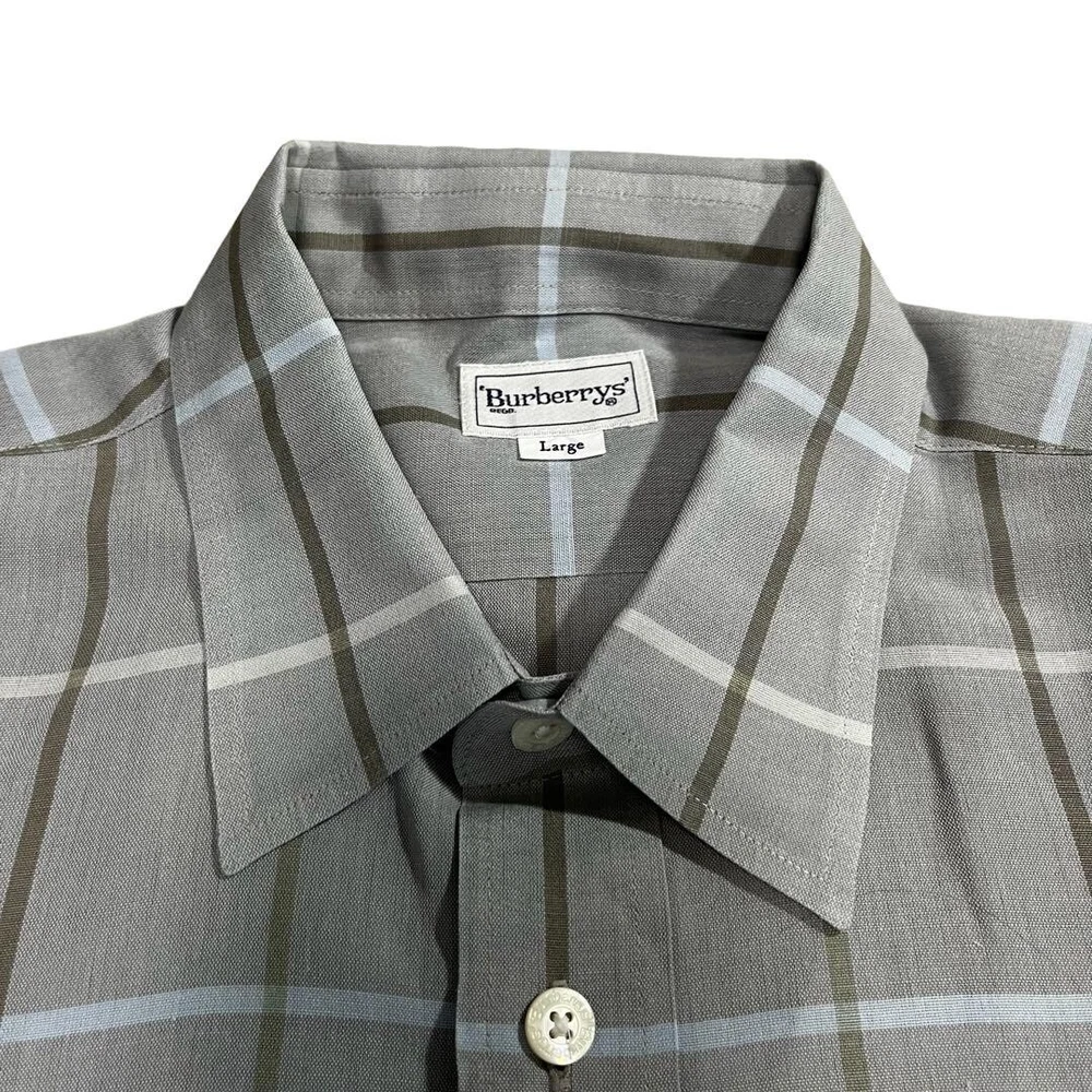 Burberry Short sleeve Shirt Button down Cotton Linen Check Gray Men Size L Used