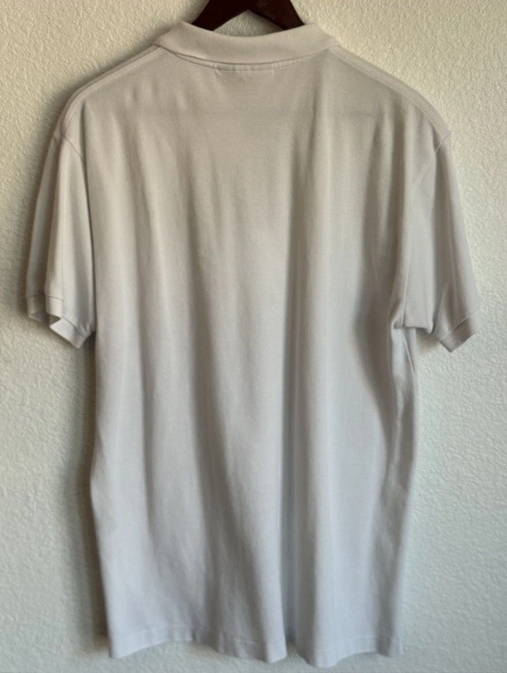 This product is a pre-owned Burberry white polo shirt in size XXL. Made for men, this regular fit polo exudes elegance and sophistication with its classic design and renowned Burberry brand. Perfect for casual or formal occasions, this polo shirt is a versatile staple in any man's wardrobe. Made from high-quality materials, this Burberry polo shirt is sure to deliver both style and comfort for the modern gentleman.