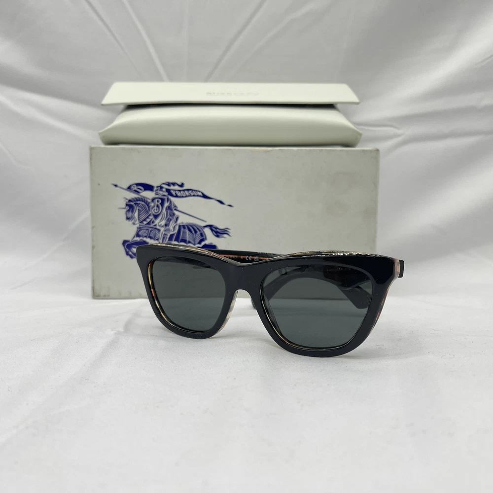 Temple Length: 140 mm Lens Color: Grey Type: Sunglasses Style: Cat Eye UV Protection: UVA Department: Women Brand: Burberry Frame Color: Black