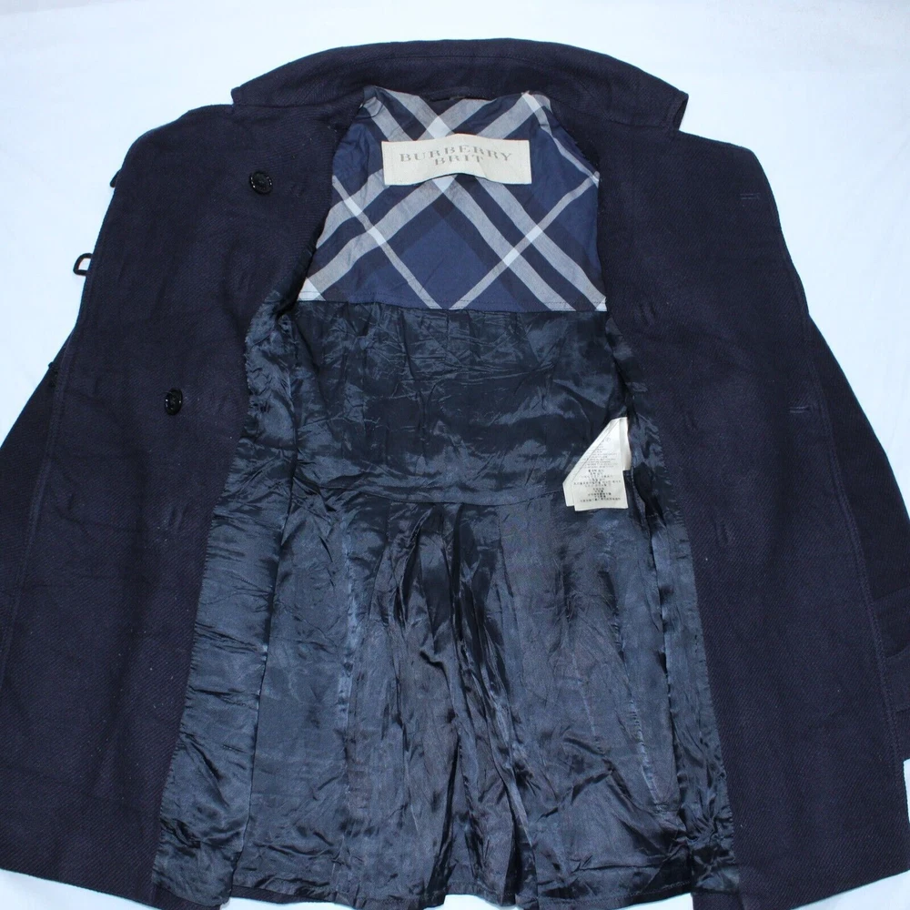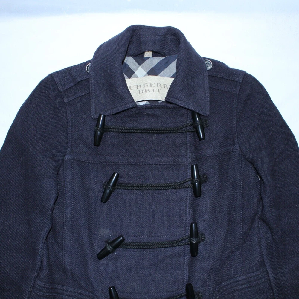 Title : Burberry Wool Duffle Coat Womens UK 8 Cashmere Double Breasted Check Lining (D106) Colour : Blue Measurements are included in the Pictures. Description : Women's Burberry Brit Wool Duffle Coat made with 75% Wool and 5% Cashmere which delivers a supremely soft double breasted Duffle Coat. Inside the Coat you will find a luxurious viscose/cotton back lining with check detailing. Tagged as a UK Size 8 - Hand measurements pictures have also been provided to assist with your fit. 🙋 We are here to help. Please let us know how we can assist you. The item will be delivered via Royal Mail. ❗️ Please note this is a vintage/2 nd hand piece and can show signs of wear. Any defects will be listed and pictured. It is advisable to wash your garments before wearing for the first time. All sizing details are available on each of our listings. If you require more information before purchasing, please contact us.