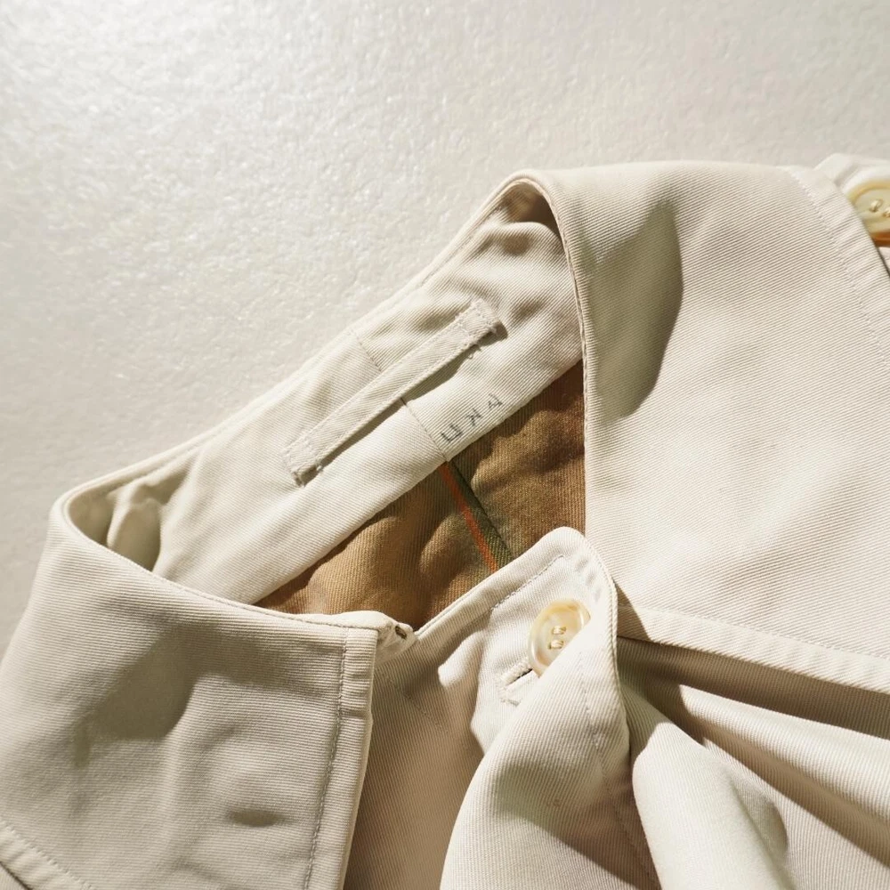 Warmth Weight: NA Chest Size: 35.4 in Size Type: Regular Occasion: Business, Casual, Travel Insulation Material: NA UPC: Does not apply Theme: NA gtin13: Does not apply Lining Material: NA Brand: Burberry Department: Men Fabric Type: NA Garment Care: NA Personalize: No Jacket/Coat Length: 35.8 in Performance/Activity: Walking Closure: Button Pattern: Check Season: Fall, Spring, Winter Fit: Slim Handmade: No Product Line: NA Features: Belted, Collared Outer Shell Material: NA Style: Trench Coat Accents: Button Collar Style: NA Size: Free Type: Coat MPN: NA Vintage: No Model: NA Color: Beige