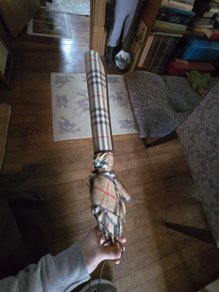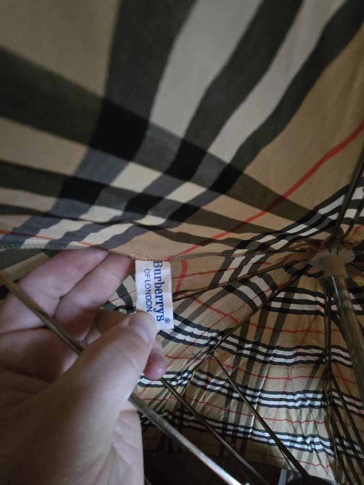 This vintage Burberry's umbrella is a must-have accessory for any fashion-forward woman. With its sleek design and high-quality construction, it's sure to be a favorite for years to come. The umbrella features a classic black color that is perfect for any outfit, and its size is ideal for staying dry during rainy days. Crafted with precision and care, this umbrella is a testament to the Burberry brand's commitment to quality and style. Whether you're using it as a fashion statement or a practical tool for staying dry, this umbrella is sure to turn heads. So why wait? Add this stunning Burberry's umbrella to your collection today!