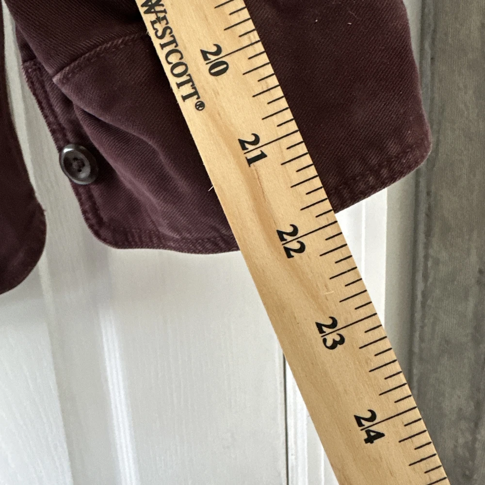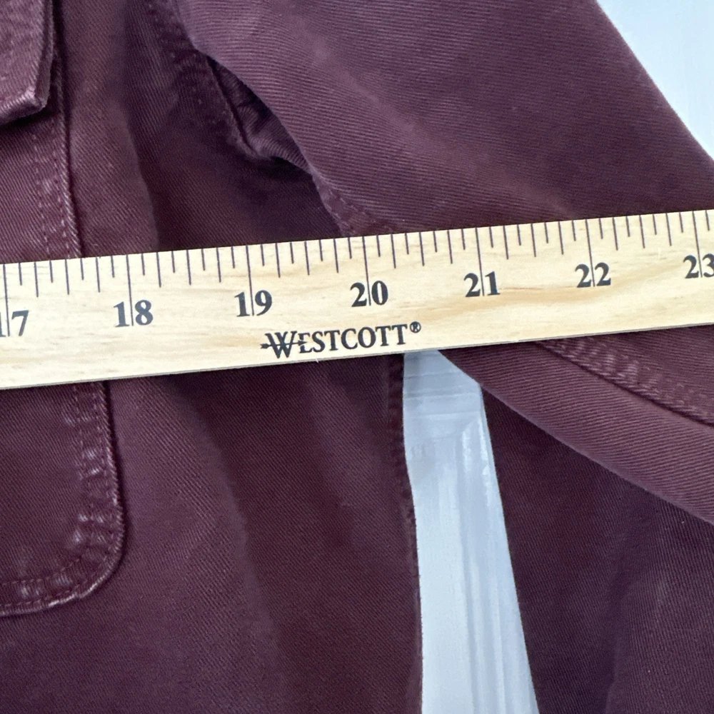Wrap up in timeless style with the Banana Republic Burgundy Jacket, a perfect addition to your wardrobe for the cooler seasons. Crafted from high-quality cotton with a soft, yet durable corduroy fabric type, this coat ensures both comfort and longevity. Its solid burgundy hue offers a versatile look that pairs well with any outfit, whether you're out for a casual stroll or traveling on business. The coat features a classic collared design with a point collar style, giving it a refined and sharp appearance. A quilted accents add a touch of texture and flair. Practical elements include a zip closure, convenient pockets, and a machine washable garment care for easy maintenance. Ideal for fall, spring, and winter, this short winter jacket keeps you looking sharp and feeling cozy. Height: 27 inches Chest Length: 20 inches Sleeve Length: 22 inches