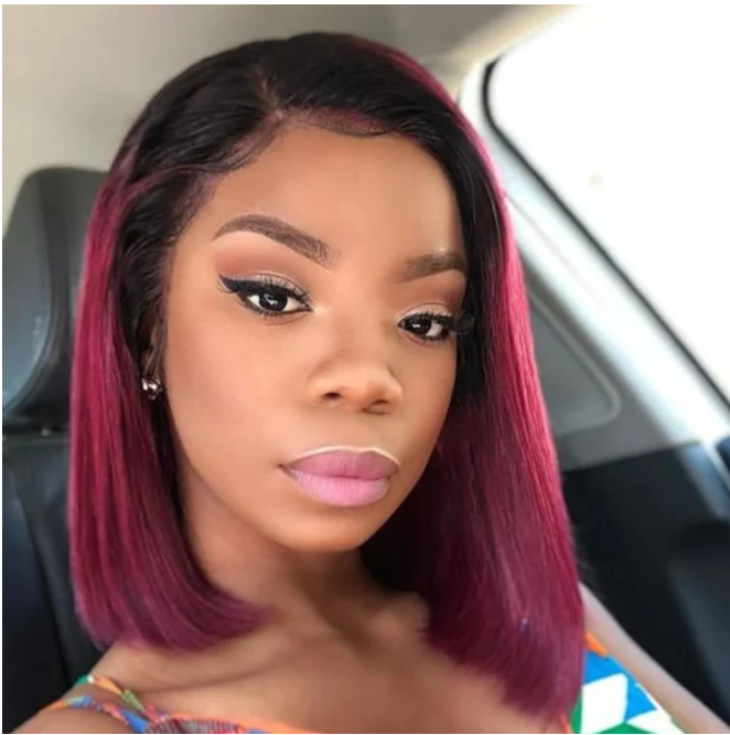 Red Highlight Black Bob Short Human Hair Lace Front Wig Glueless Straight