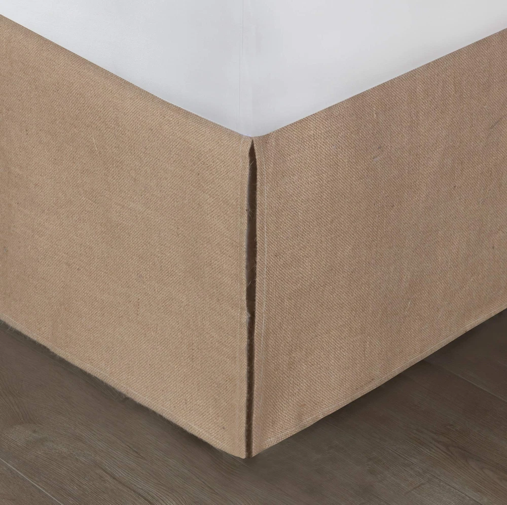Bring a more natural, organic vibe to your bedroom with a rustic burlap bed skirt. In natural colors and made from 100% burlap, each bed skirt is tailored with split corners. Feature 15" drop length. 100% burlap drop with polyester platform. Dry clean or spot clean only. Dimensions: Twin 39x75" + 15" drop, Full 54x75" + 15" drop, Queen 60x80" + 15" drop, King 78x80" + 15" drop. Perfect for creating a rustic chic bedroom décor Coordinates with a variety of bedding styles 15-inch drop length Country of Origin : China