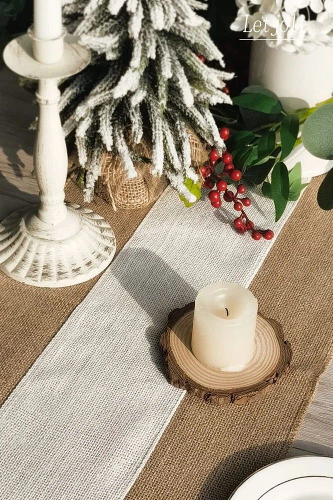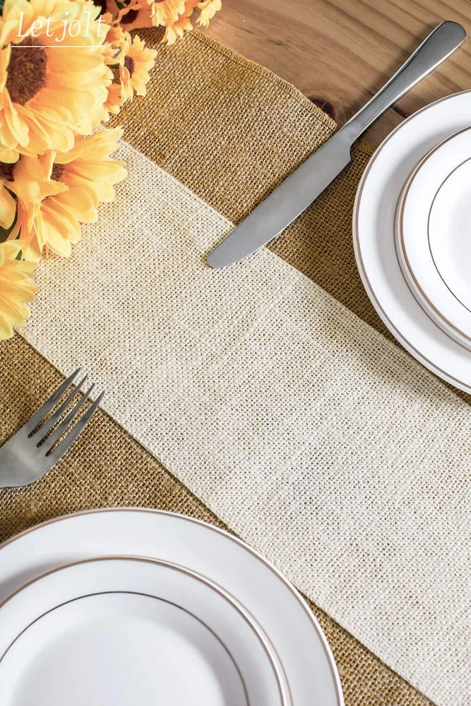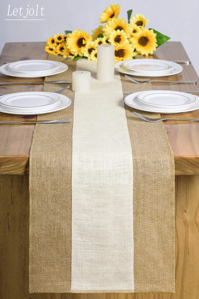 Splicing Burlap Table Runner Material 100% Nature Jute Burlap, durable and eco-friendly Fine workmanship. Size 12'' wide x 108'' long Perfect for displaying on banquet tables, candy buffet tables, dining tables, adding that unique rustic look to your home decor. Perfect for Wedding, Theme Party, Bridal Shower, Baby Shower, Easter, Easter Sunday, Valentine's Day, impressing guests at your special event. Barn, Woodland, Vintage, Shabby Chic. Note Because of the monitor, the color of the product may be slightly different. Please understand. No machine wash or brush wash. Burlap and Jute is not a perfect fabric. Slight imperfections can be expected with burlap.It will take you a few minutes to flatten it out. Material: 100% Nature Jute Burlap, durable and eco-friendly. Fine workmanship. Size: Measuring 12'' wide x 108'' long, perfect for displaying on banquet tables, candy buffet tables, dining tables, adding that unique rustic look to your home decor. Splicing Table Runner - Natural colour edge, Perfect for Wedding, Theme Party, Bridal Shower, Baby Shower, Easter, Easter Sunday, Valentine's Day, impressing guests at your special event. Barn, Woodland, Vintage, Shabby Chic. Because of the monitor, the color of the product may be slightly different. Please understand. No machine wash or brush wash. Burlap and Jute is not a perfect fabric. Slight imperfections can be expected with burlap.It will take you a few minutes to flatten it out.