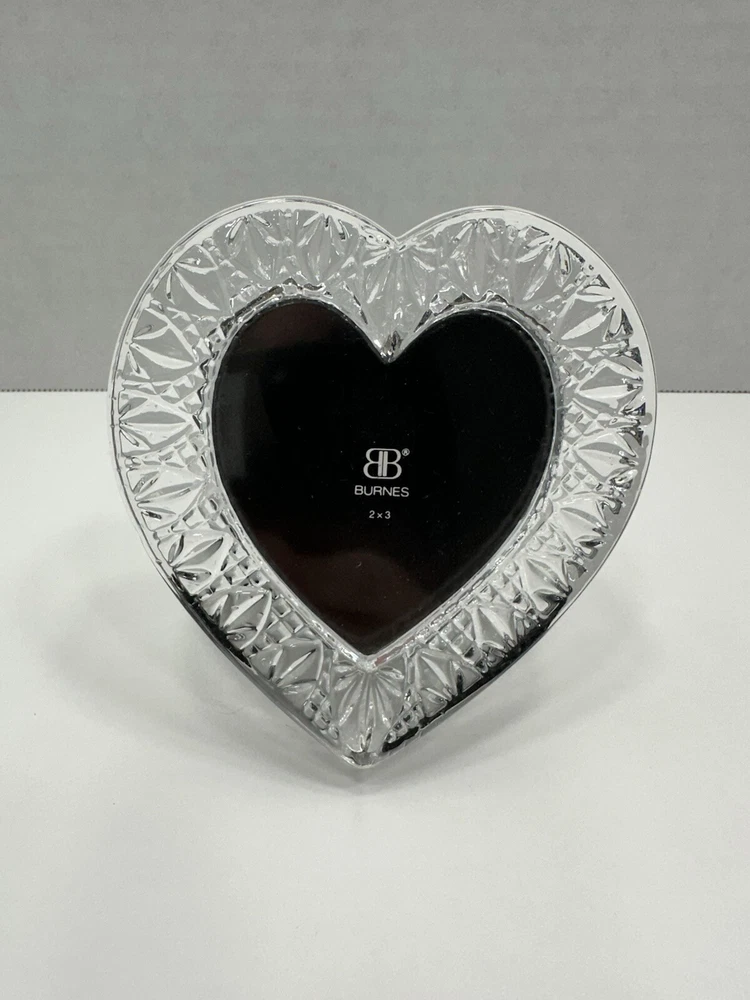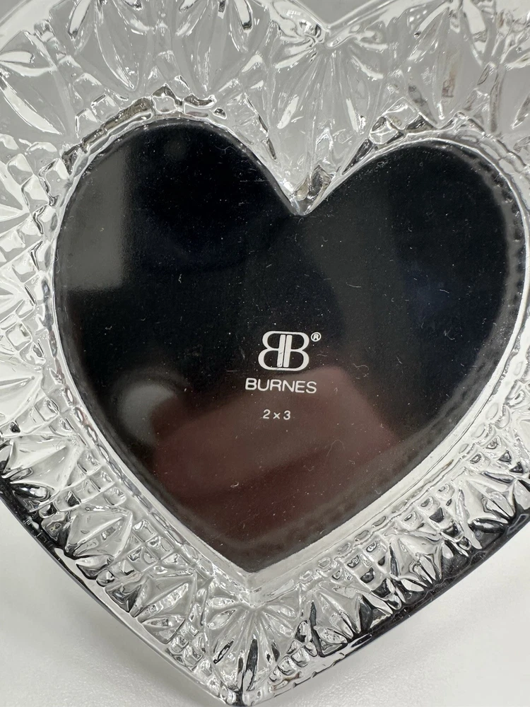 Burnes Clear Glass Heart Shaped Photo Frame With Easel 2”x3” Photo Size No chips or cracks.