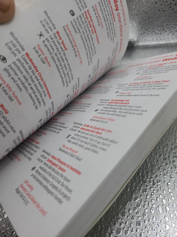 The "Burning Man 2013 Cargo Cult Who, What, When, Where Guide" is a detailed guide providing information on the Burning Man event in 2013, specifically focusing on the theme of Cargo Cult. It includes details on who will be attending, what activities and art installations will be present, the schedule of events, and the location of the event. Some signs of age and regular use