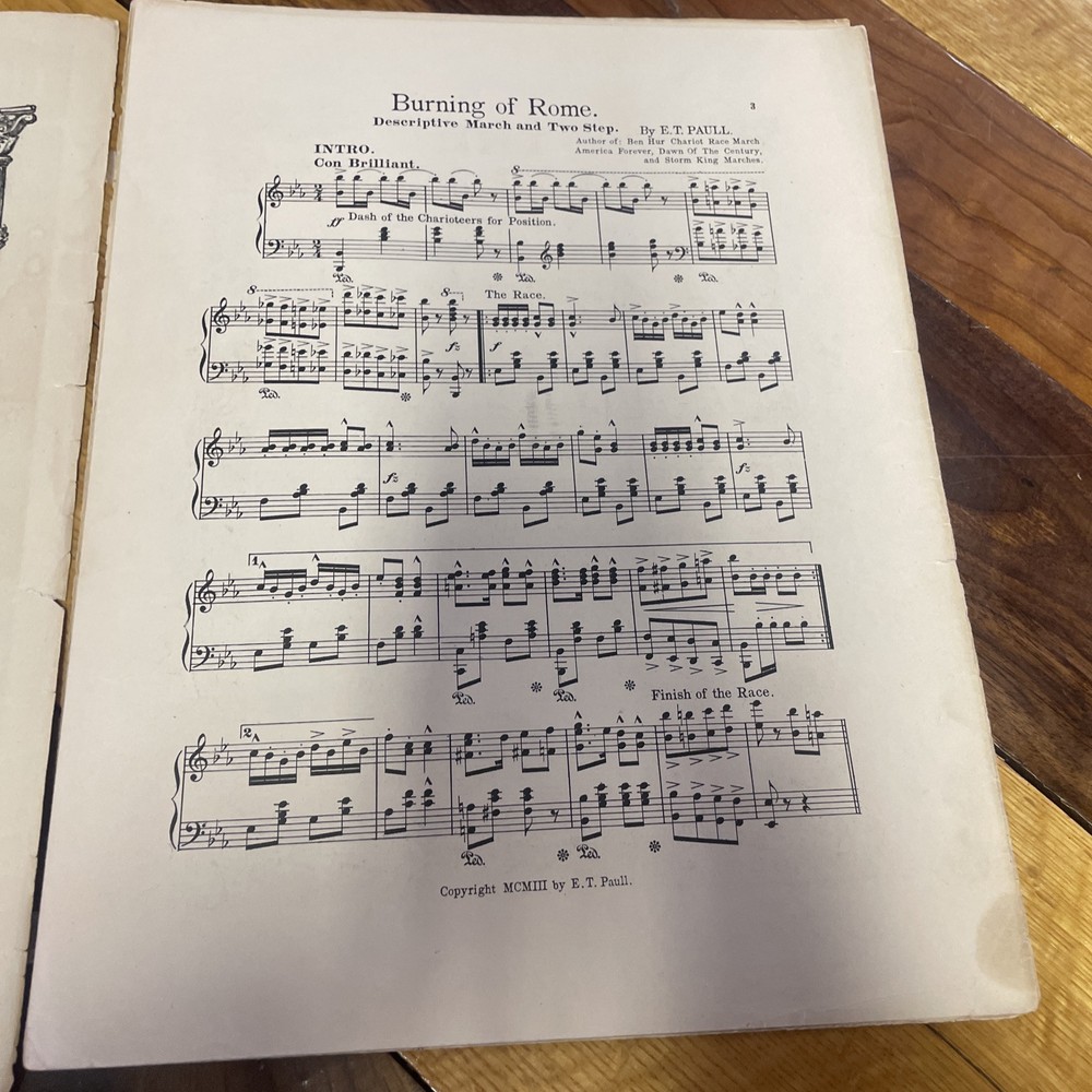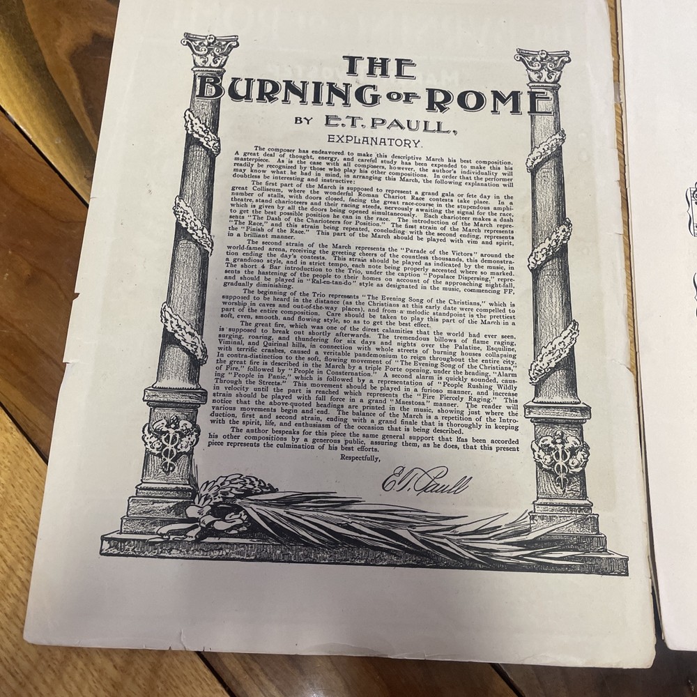 Burning of Rome March Two Step 1903 Piano Sheet Music by E. T. Paul - Large Size