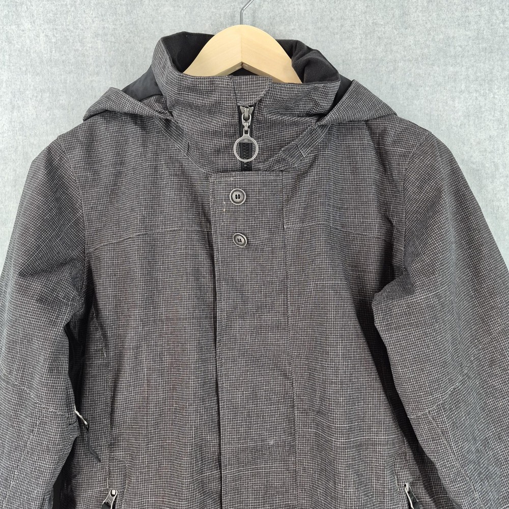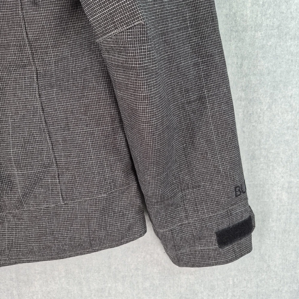 Welcome to Aspen Crossing, your place to shop for men’s modern rustic western wear and refined leisure styles reflecting the rugged beauty of our American West Burton Jacket Mens Small Gray DRYRIDE Hooded Insulated Ski Snowboarding Plaid Brand: Burton. Item: Mens hooded insulated ski and snowboard jacket. Gender/Size: Mens Small (S), as indicated on the interior size label. Although the tag indicates the size , please compare the actual measurements in the photos above with one of your own garments to ensure a correct fit. This garment length is measured from the top of the shoulder to the hem, chest from underarm to underarm, shoulder width from shoulder seam left to right and sleeve length from top of shoulder to cuff Color: Gray mini check plaid pattern. Material: Shell 100% polyester with polyurethane membrane; insulation 100% polyester; lining includes polyester with nylon taffeta and mesh panels. Country of origin: Made in Vietnam. Style/Model identifiers: Burton Dryride line; style WB JET SET JK; RN 87380; CA 26037. Features: Full front zipper with large ring pull and snap storm placket, attached hood with high stand collar, two front zip hand pockets, interior mesh and slip pockets, adjustable hook-and-loop tab cuffs with Burton logo embroidery, integrated powder skirt with snap closures and gripper hem, and hip-length insulated construction suitable for skiing, snowboarding, or other cold-weather outdoor activities. Care: Machine wash cold (below 30°C) using powder detergent; wash separately, rinse thoroughly, do not use fabric softener, and periodically replenish the water-repellent finish with spray-on treatment only (per care label instructions). Notes: Measurements are shown in photos for reference; color may vary slightly due to lighting and monitor settings.