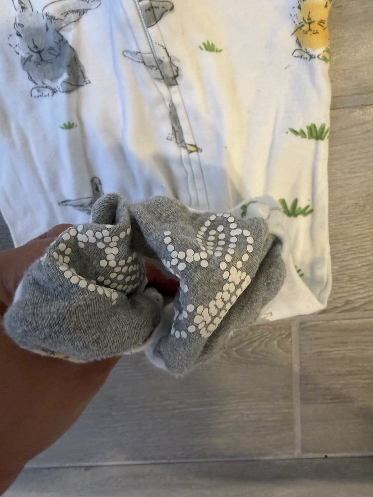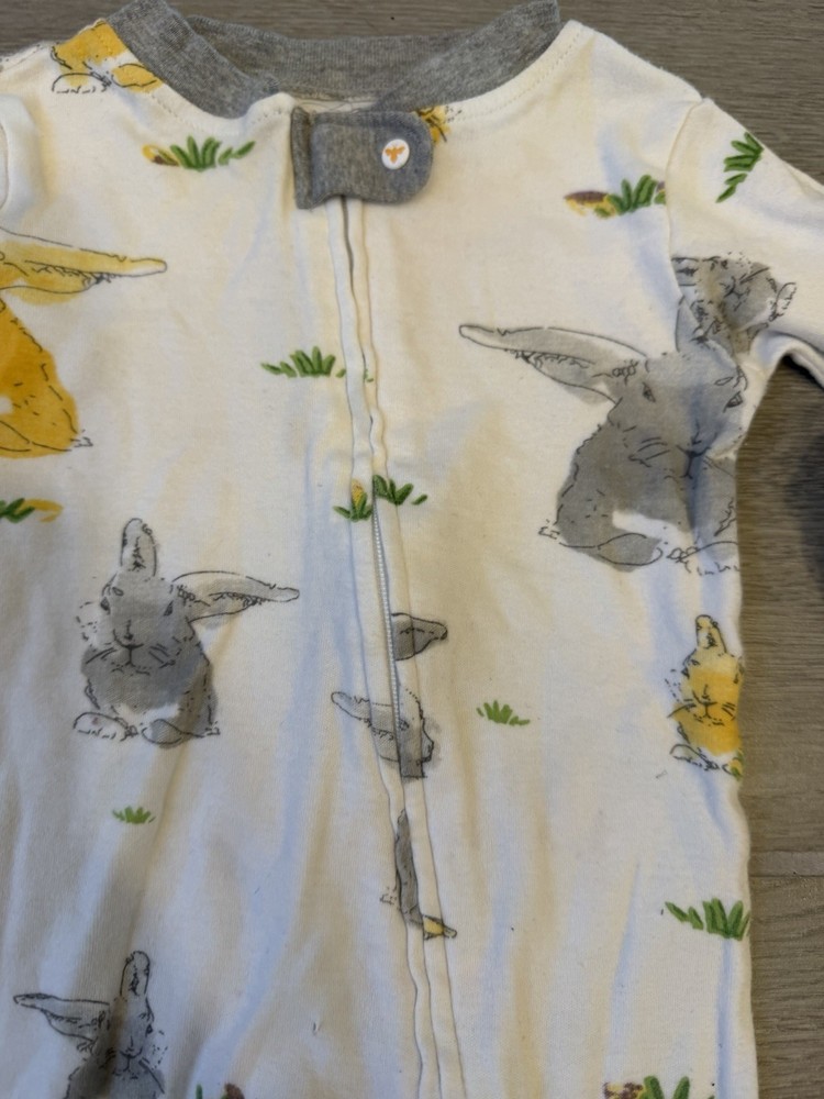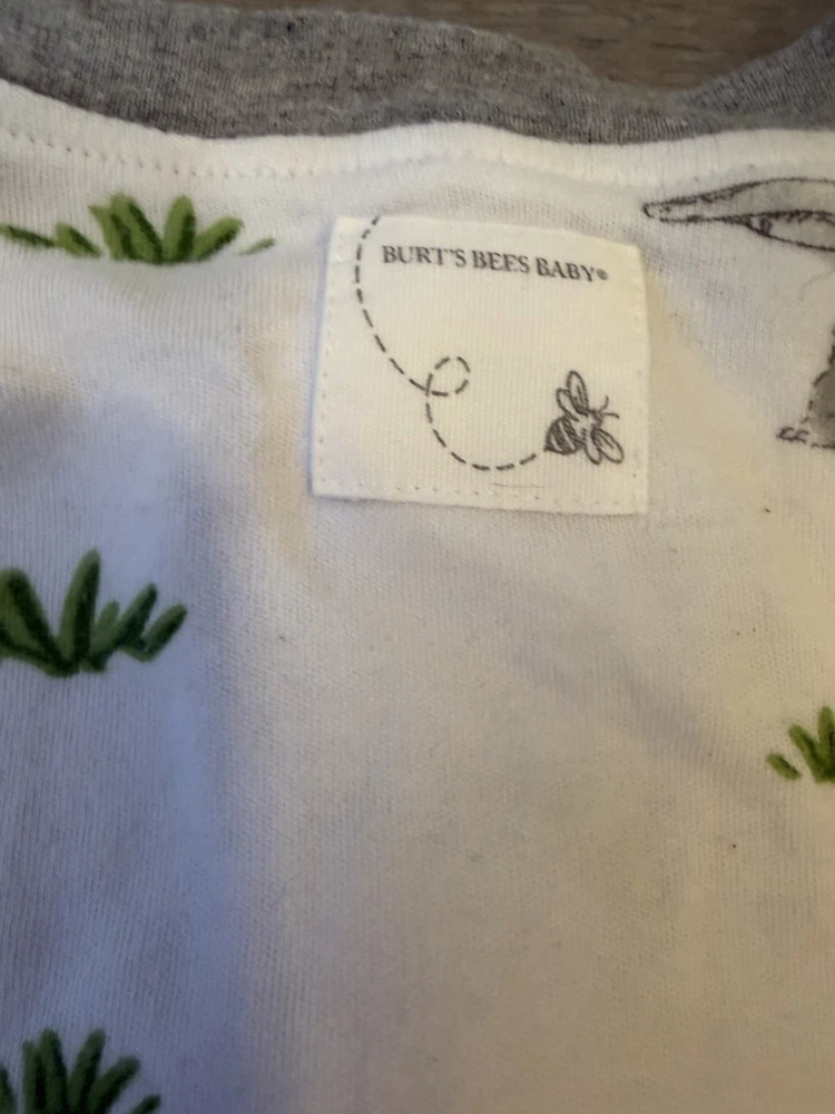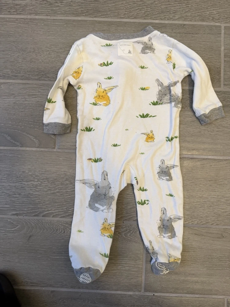 Burt's Bees Baby Bunny Trail Organic Cotton Footed Zip Up Sleeper is a cozy and comfortable one-piece outfit for babies aged 3-6 months. Made from soft and breathable cotton, this sleeper features long sleeves and a convenient zip closure for easy dressing. The multicolor design with cute bunny accents adds a fun touch, while the machine washable fabric makes for easy care. Ideal for both baby boys and girls, this sleeper from Burt's Bees is a stylish and practical choice for bedtime or naptime. •Preloved in Excellent Condition •Super Cute •Pet Free/Smoke Free Home •Fast Shipping