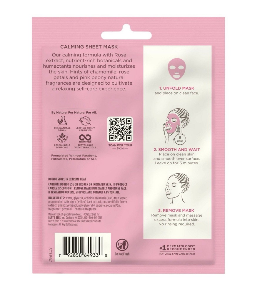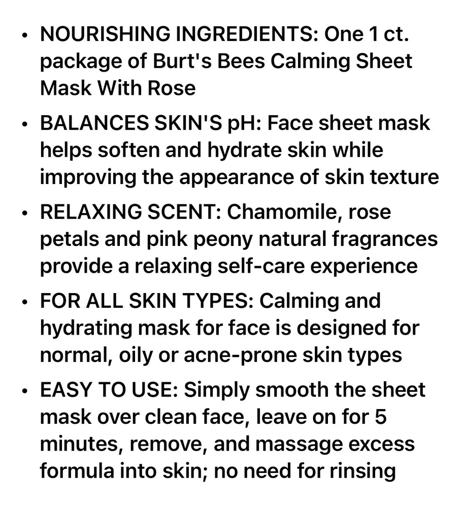 NEW-Factory Sealed (Lot of 4) Includes: (4) Individually Packaged BURT’S BEE’S Calming Sheet Mask Rose Single Use Sheet Mask Please see pictures for more details 😁