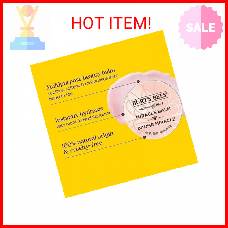 100% Genuine Free Shipping Gift Cards WELCOME TO THE SHOP Burt's Bees 100% Natural Origin Goodness Glows Miracle Balm, Hydrates and Softens Dry Skin From Head To Toe, 0.6 Ounce Tin - MULTI-PURPOSE BALM: Soothe, soften and moisturize dry skin on your face, cuticles, elbows; use as a lip moisturizer or anywhere you need a little extra moisture - ABSORBS QUICKLY: Lightweight and non-greasy formula goes on smoothly and absorbs quickly to moisturize skin and leave a dewy finish on your lips, cheeks or brow - INSTANTLY HYDRATES, NATURALLY: Miracle Balm is made with 100% natural origin ingredients, including plant-derived squalane, a natural emollient that hydrates skin - WORKS AS AN EYEBROW TAMER: Just a dab of Burt's Bees Goodness Glows Miracle Balm will define, tame, or taper unruly eyebrows; works to smooth flyaways as well - USE AS A HIGHLIGHTER OR LIP GLOSS: Blends well with or without make-up; use it to highlight cheeks and brow bones, or use as lip balm to hydrate under other lip product Payments We accept the following payment methods PayPal Please pay as soon as possible after winning an auction, this will allow for quicker shipping times! Returns We accept returns. You can return unopened items in the original packaging within 30 days of your purchase with receipt or proof of purchase. If 30 days or more have passed since your purchase, we cannot offer you a refund or an exchange. Upon receipt of the returned item, we will fully examine it and notify you via email, within a reasonable period of time, whether you are entitled to a return. If you are entitled to a return, we will refund your purchase price and a credit will automatically be applied to your original method of payment. Only regular priced items may be refunded. Sale items are non-refundable. Shipping Shipment processing time All orders are processed within 2-3 business days. Orders are not shipped or delivered on weekends or holidays. If we are experiencing a high volume of orders, shipments may be delayed by a few days. Please allow additional days in transit for delivery. If there will be a significant delay in shipment of your order, we will contact you via email or telephone. Shipping rates & delivery estimates Shipping charges for your order will be calculated and displayed at checkout.