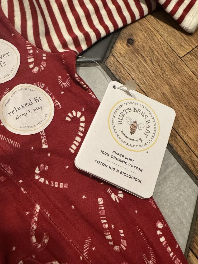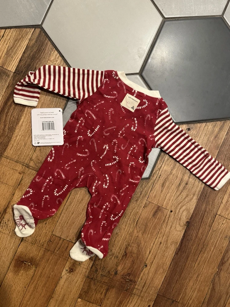 Burts Bees One Piece Pajama Newborn Baby Christmas Candy Cane Organic Cotton NWT