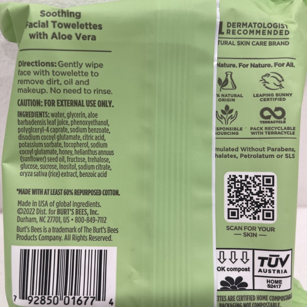 Experience the gentle ease of Burt's Bees Facial Cleansing Towelettes, specifically crafted for sensitive skin. Each pack contains 30 count wipes that are formulated to delicately remove makeup, excess oil, and acne-causing impurities, leaving your face feeling refreshed and clean. These towelettes boast a commitment to natural origins, with 99% of their ingredients derived from responsible sourcing. Proudly manufactured in the United States, they align with animal cruelty-free standards, ensuring a kind and nurturing approach to skincare. Enjoy a seamless fusion of efficacy and ethics for your facial care routine.