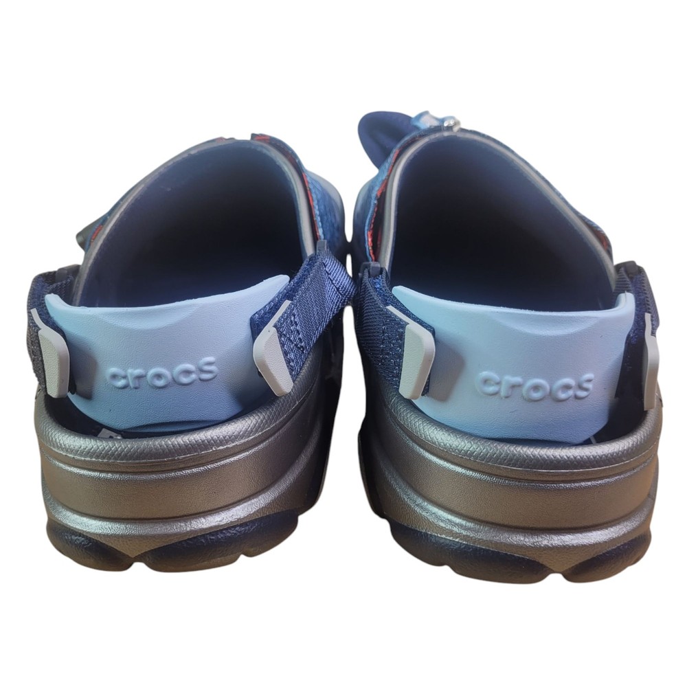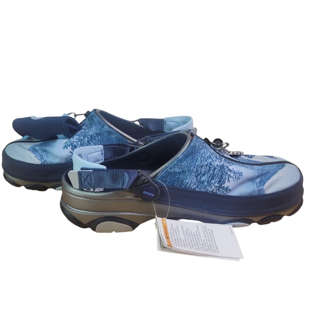 Busch Light Beer x Crocs Men's 11 All Terrain Clogs Bottle Opener Light Koozie These Crocs x Busch Light collaboration clogs are designed for men in a size 11. They feature a solid blue color with a slip-on closure and a bottle opener and light koozie accent. Ideal for casual occasions, these limited edition clogs are lightweight and comfortable, with an adjustable strap for a secure fit. Perfect for outdoor activities, they showcase the iconic Busch Light logo and are suitable for wearing in the summer, fall, and spring seasons. Made with rubber outsole material, these USA-themed clogs are a fun and functional choice for fans of Busch Light beer.