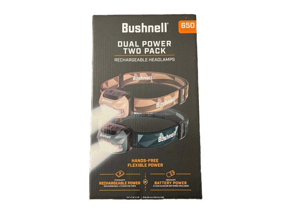 Bushnell Dual Power Rechargeable Headlamps Flashlight 650 Lumens, 2 Pack