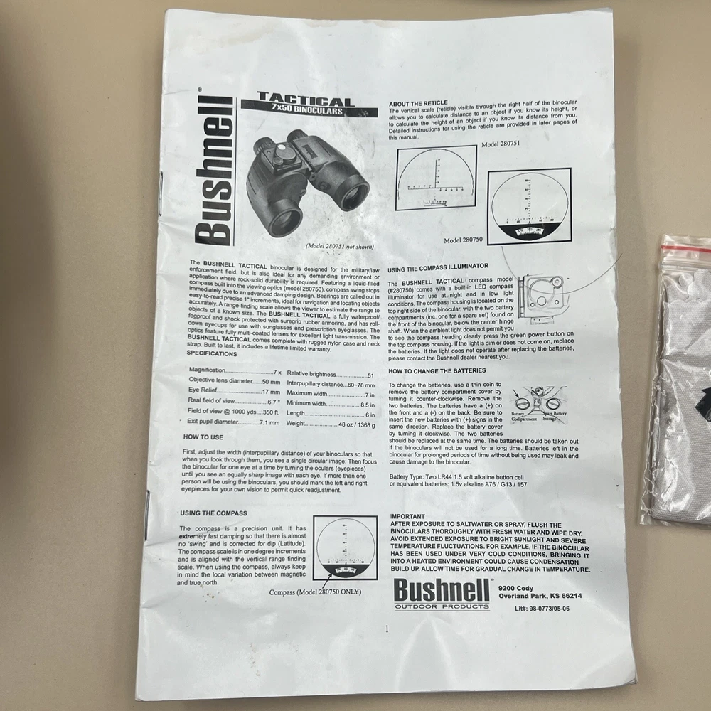 They are in good condition very clear and crisp lenses the internal compass does not work. Comes with carrying case and manual.
