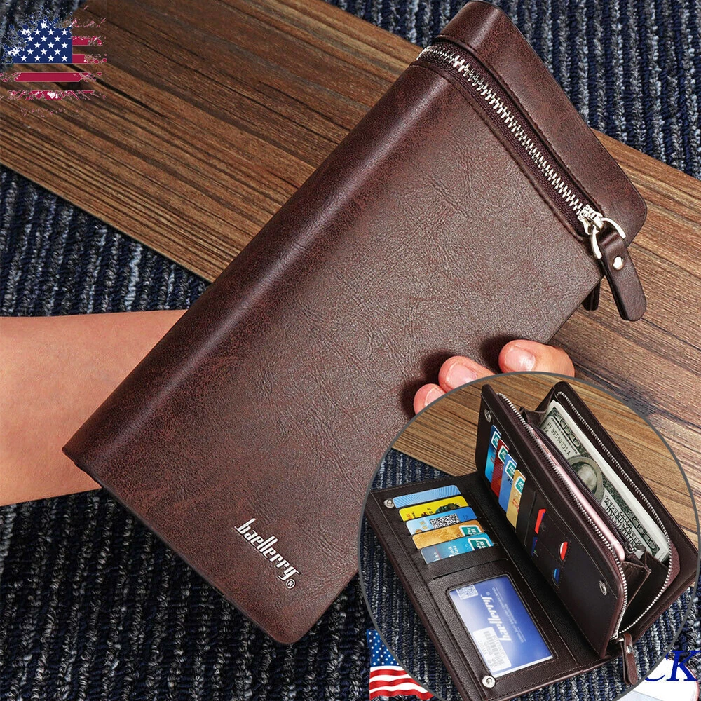 Description: Material: PU Leather Color: Black/Coffee Dimensions: approx 19.5x10.5x3 cm / 7.68x4.13x1.18 Inch With a classic look that never goes out of style, this wallet offers storage and organization for all of your most important personal items. This wallet is crafted from top-grain leather and features a multi-compartment design with multiple interior pockets for storage. Snap tab closure reveals a slip pocket for cash, A zip around compartment includ es two large open pockets to hold bill/check,phone or other must have items. Package contents: 1 X Men's Long Wallet Without Box