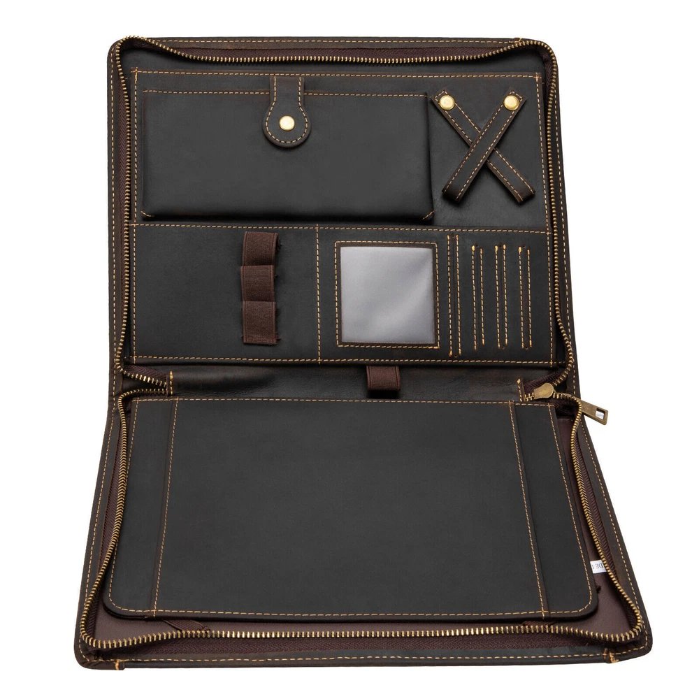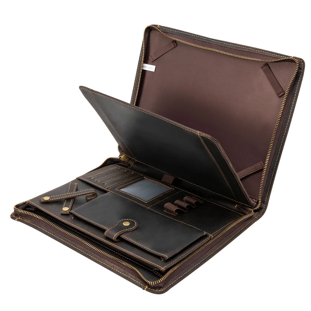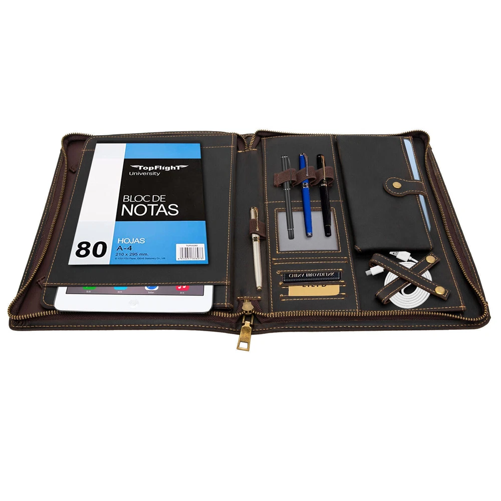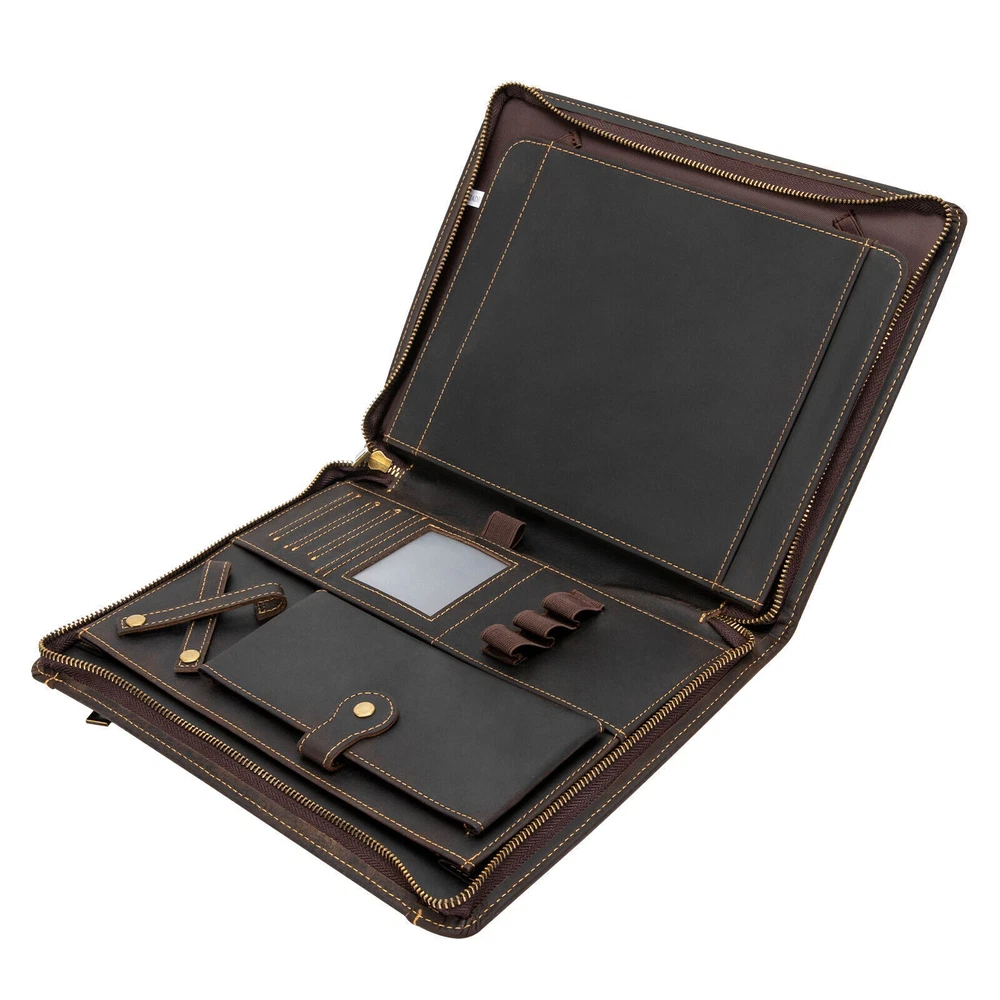 Specification Style: Modern Color: Brown Material: Cowhide Leather, Alloy, Plastic Cement Shape: Rectangular Compatible Devices: 24cm/9.7inch Tablets/Laptops Net Weight: 0.67kg/1.4lbs Gross Weight: 0.8kg/1.7lbs Package Size: 31*25*4cm/12*9*1.5inch Product Size: 29.5*23*4cm/11.41*0.87*1.57inch Package Included 1* Leather Padfolio Folder Business Top-layer Leather Portfolio Zippered Notebook Binder Office Organizer Description Meetings, interviews, or classroom presentations require a lot of preparation, so we need a practical bag to organize objects. This product provides you with a great choice. Made of top-layer cowhide leather, it is very durable. And multiple compartments can facilitate the classified storage of office files, mobile phones, pens, data cables, and more. It not only makes you more confident but also gives others a good impression. Key Features Preferred Material: Made of top-layer cowhide leather, it has high toughness, good air permeability, and is comfortable to touch, allowing you to use it for a long time. Due to the natural property of leather, the appearance may change to a more mature and aged look.This aging of the leather not only makes it more flexible but also strengthens the material. You can slowly enjoy the change of texture! A Good Assistant: It can organize letters, notebooks, important documents, paper, printouts, flyers, commercial credit cards, photos, etc, and protect precious electronic products from collisions and scratches. Sorted Storage: A tablet holder with four elastic bands can accommodate 9.7-inch tablets/laptops and provide excellent fixation. Two large pockets can be used to store receipts, checkbooks, tickets, or passports. Four highly elastic pen slots can accommodate various sizes of pens, pencils, and markers. A phone bag with a buckle can be used to store your phone. The headphone holder can be used to store headphones, USB cables, and charging cables. And four card holders can store your business cards, ID cards, or credit cards. High-end Appearance: The natural texture of leather, classic brown, metal zippers, and rounded edges make the product look simple but luxurious, which can showcase your extraordinary fashion taste. Portable: It is lightweight (1.4 lbs), compact ( 11.41*0.87*1.57 inches ), and can be conveniently placed in a suitcase or briefcase, making it an excellent companion for business travel. It can also serve as a substitute for a briefcase, laptop bag, and backpack. Ideal Gift Choice: Good practicality makes it an ideal gift for colleagues, friends, or recent college graduates on Father's Day, Mother's Day, birthdays, Valentine's Day, Christmas, and other occasions. Exquisite Workmanship: Fine and neat stitching can make the product look more exquisite and extend its service life. Guaranteed Customer Service: We aim to provide quality products and services. If you have problems, please feel free to contact us. We will reply and solve the problem for you as soon as possible. Details Durable Zippers: The high-quality alloy zippers are wear-resistant, corrosion-resistant, waterproof , and can resist impact, deformation, and fracture, which can extend the service life of the product. And you can zip up the product to prevent losing items. Clear Card Window: The clear card window made of plastic cement allows you to easily see the cards inside for easy access. Application It is suitable for students or professionals to store office supplies for presentations, meetings, interviews, or daily management tasks. Specification Style Modern Color Brown Material Cowhide Leather, Alloy, Plastic Cement Shape Rectangular Compatible Devices 24cm/9.7inch Tablets/Laptops Net Weight 0.67kg/1.4lbs Gross Weight 0.8kg/1.7lbs Package Size 31*25*4cm/12*9*1.5inch Product Size 29.5*23*4cm/11.41*0.87*1.57inch Package Included 1* Leather Padfolio Folder Notes Please avoid immersing the product in water or exposing it to water for extended periods. Please avoid using sharp objects to rub the product. The top-layer cowhide has a natural texture and is prone to wrinkles, marks, spots, and creases, which is a normal phenomenon. You can repeatedly rub with your fingers, and use a dry cloth, sponge, hand cream, or leather care oil to make scratches fade or disappear. Please confirm the size of the tablet or laptop before ordering. If unsure, please measure it in time. Please allow the slight color difference caused by the shooting light and 1-3cm error due to manual measurement, and make sure you do not mind before ordering. Payment Delivery details Terms of sales About us Contact us Payment We accept ebay payment 。 Fees such as import duties, taxes are not included in the item price or shipping costs. These charges are the buyer's responsibility. Delivery details Shipping: 2-9 working days to: USA Terms of sales We maintain high standards of excellence and strive for hundred percent customer satisfaction. Feedback is very important to us. We hope that you contact us immediately before you give neutral or negative feedback, so that we can address your concerns. It is impossible to address issues if we do not know about them! About us Your satis faction is our ultimate goal. We work hard to earn your trust and future business. Our certified technicians have tested each item before shipping. The unit comes with 1 year limited warranty on all manufacturing defects. a) If you receive a defective item, you may return it or ask for a discount. Please contact us within 14 days after you receive the package. b) What you returned must be intact and in its original packaging as re? u. Customer is responsible for shipping costs of the returned item. c) We will cover the cost of shipping back t with the shipping rate indicated in the registration page. We will send you a new unit or refund the full payment you paid. Thank you. Contact us Business Hour Business Hour: Monday To Friday: 8:30 AM to 5:00 PM (Beijing China time) Due to time zones, our reply to your 
