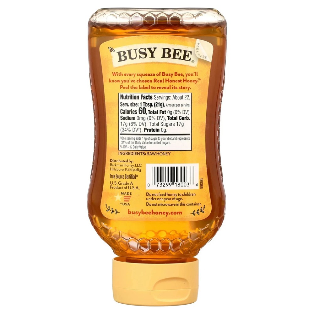 Busy Bee Raw USA Honey, 100% Traceable, 16 oz Squeeze Bottle, Peel The Back Labe