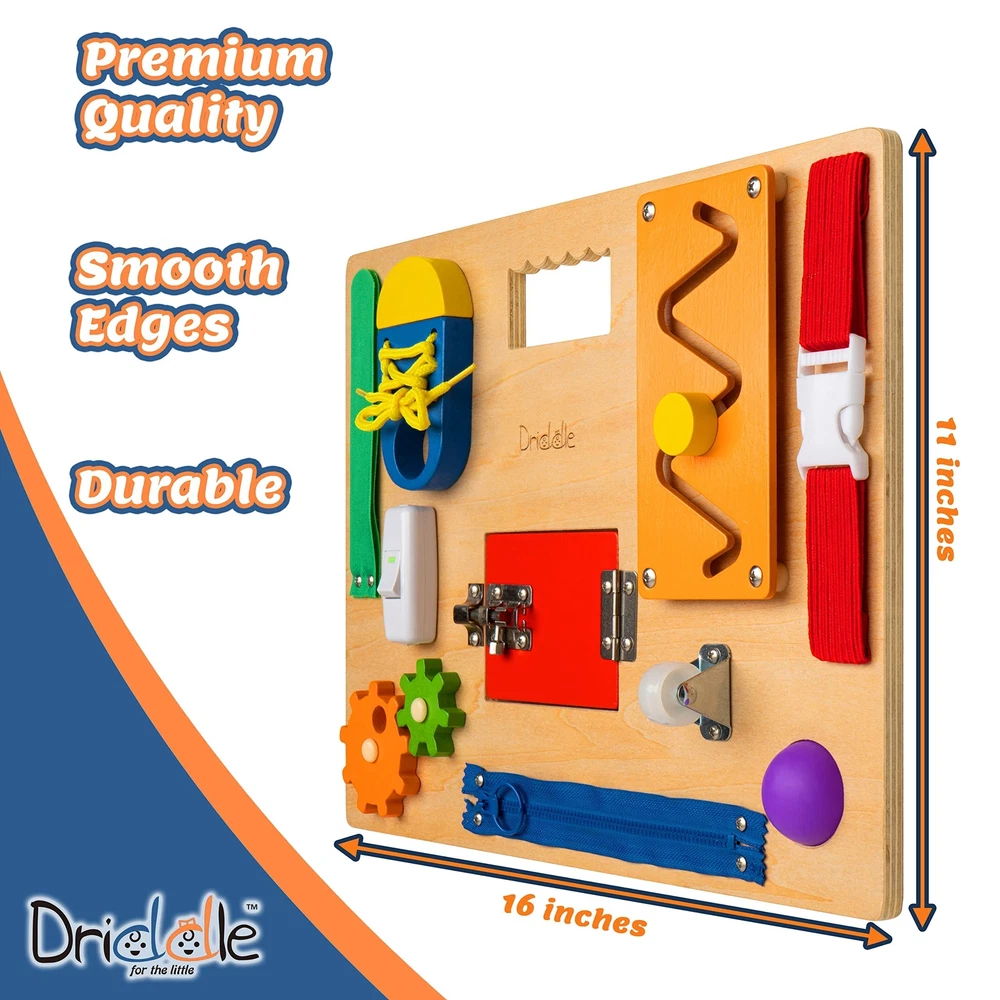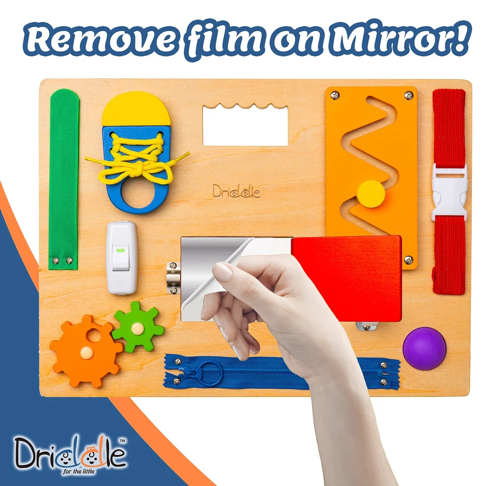 Busy Board - Wooden Montessori Activity Board for Toddlers & Kids - 12 Educational Sensory Toys to Learn Basic Life Skills & Develop Fine Motor Skills + Baby Mirror Beautiful & Colorful Wooden Activity Board With 11 Unique Activities For Your Kiddo To Conquer! With no less than 11 different activities -more than any other busy board- that will challenge and engage even the most energetic toddlers, it’s certain that your cutiepies will love getting their little fingers on their new sensory board that includes: Velcro Fastener, Shoe Lace, Buckle, Zip Labyrinth, Gear, Wheel Switch, Pop It Button Latch, Door (With hidden mirror behind the door) With an extra durable, timeless and attractive wooden design that is expertly made to be as toddler-safe as possible, you have every good reason to add this educational busy board to your kid’s toy collection. Creativity, Montessori Learning & Life Skill Development Go Hand In Hand. Offer This Gift To Your Little Explorer Today! 12 IN 1 🎨 Features a range of 12 Montessori inspired activities that are fun, sensory, challenging & colorful LAB TESTED CHILD SAFE 🎨 Made with premium wood Non-toxic FREE of BPA, Lead, Phthalate, Meets All U.S. Toy Safety Standards PORTABLE DESIGN WITH HANDLE - 🎨 Lightweight & Perfectly designed for kids to easily carry & Travel FUN & EDUCATIONAL 🎨 Teaches kids how to snap, lock, buckle, button, tie, zip, and switch - Also develops their fine motor skill, Hand eye coordination, finger dexterity & cognitive skill. HIDDEN MIRROR BEHIND DOOR 🎨 Suitable for babies & kids of all ages Shipping from the USA All of our products are shipped from the USA, ensuring quick delivery to your destination. Payment We offer the following payment methods: PayPal, credit card, bank transfer, and eBay's secure payment system. Free Shipping & Free Returns Shipping within the USA is FREE. Additionally, any return is absolutely free for you. Risk-Free Purchase You have the option to return an item within 30 days without any justification. We cover the return shipping costs! Fast Shipping We ship immediately upon receipt of payment. Generally, the package is delivered within 2-3 days in the USA. If it takes longer, we will contact you. Quality and Costs Made in Europe, USA, China No customs fees or additional charges Total satisfaction guarantee Invoice with declared VAT available upon request in .pdf format Feedback Your feedback is very important to us. After you pay for your purchase, you will automatically receive positive feedback from us.