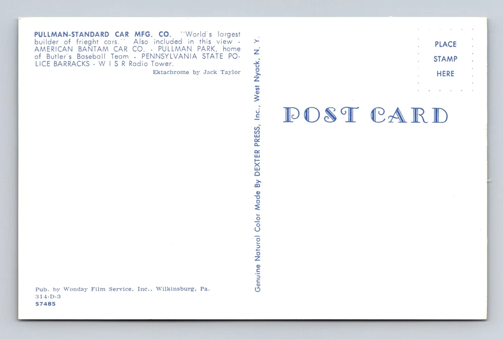 Butler PA-Pennsylvania, Pullman-Standard Manufacturing Company, Vintage Postcard
