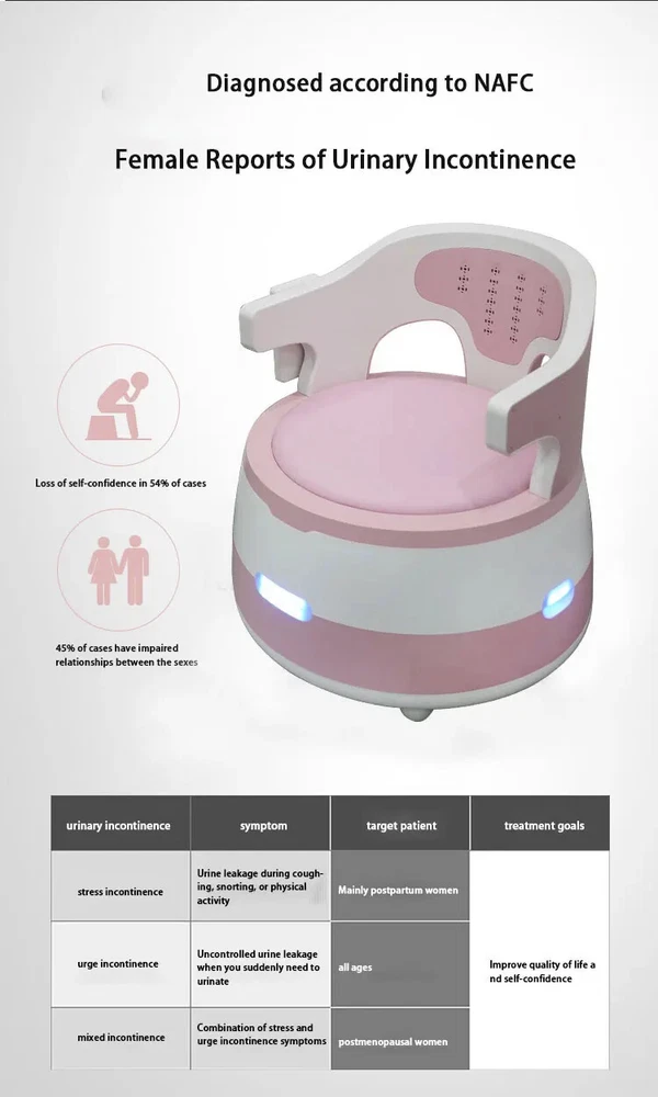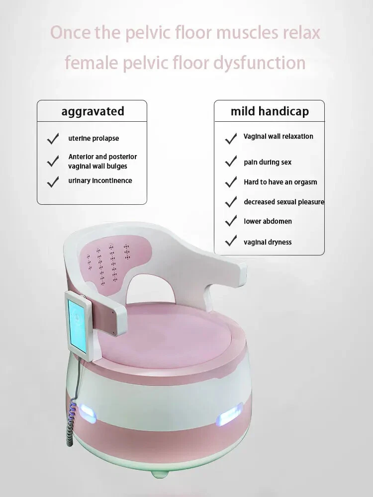Why treatment is needed Pelvic floor muscle relaxation will cause pelvic floor dysfunction Mild obstacles: vaginal wall is loose, pudenda is dry, and you feel pain during sex; It is difficult to have orgasm; Decreased sexual pleasure, accompanied by tummy drop, frequent urination and constipation. Patients with aggravated condition: uterine prolapse, anterior and posterior vaginal wall bulge, urinary incontinence. Urinary incontinence seriously affects women's physical and mental health. Advantages 1. Strengthen pubococcygeal muscle (PC muscle) 2. Increase the blood flow and nerve function of the basin 3. Increase the thickness and lubrication of postmenopausal vaginal wall 4. Promote postpartum recovery 5. Restore vaginal muscle tension and improve vaginal health 6. Increased sensitivity and functionality 7. Prevention and treatment of stress urinary incontinence Package In clude : 1 * Main machine