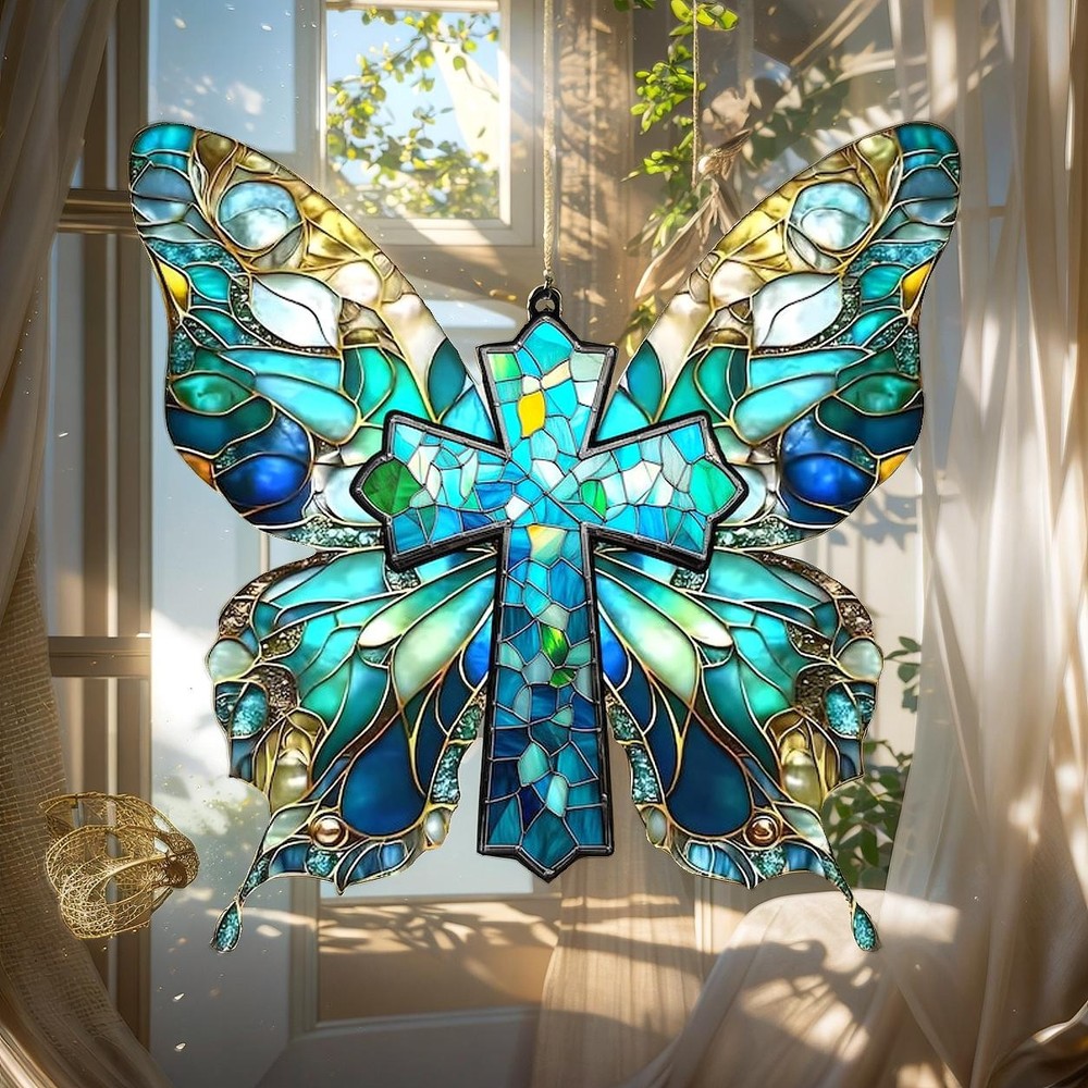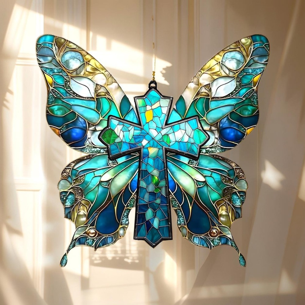 Butterfly Cross Acrylic Suncatcher Faux Stained Glass Window Hanging Christian π READY TO GIFT: Each ornament has a red ribbon and a Christmas card, making it perfect for gifting. Welcome to the festive season! ππππ These ornaments are printed on a flat surface, making them flat in nature, but their clever design creates a striking 3D effect that truly pops. With Christmas just around the corner, we offer a range of delightful personalized ornaments, perfect for adding a festive touch to your home or for giving as thoughtful gifts to friends, family, and loved ones. Customize these ornaments to your preferences and enjoy them for many years to come. π Product Details π - Material: Acrylic - Durability and Quality: Printed on one side, ensuring longevity and high-quality craftsmanship **Note:** - Includes: Ornament, wooden beads, and rope. - A durable string is provided for easy hanging. Listing and template services provided by inkFrog