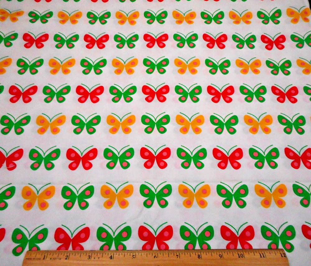 This is a very nice fabric that is 100% Cotton. This is a premium quilting cotton by Robert Kaufman Fabrics called Flirty Flowers that is out of print. It has red, yellow and green butterflies with pink dots in them on a white background. Computer monitors show colors and shades differently. If you have any questions regarding this, please contact me before purchasing the item. I have been a quilter for 30 years and am an accomplished seamstress & would be happy to answer any questions you might have. This is for 1 Yard of fabric. If you purchase more than 1 Yard, I will give you one continuous cut. If you have a problem with anything you purchase from me, please contact me before leaving neutral or negative feedback and I will work it out with you. Payment is due within 48 hrs. If payment is not received within 5 days, it will automatically go to Ebay's resolution center for non-payment. INSTRUCTIONS FOR COMBINED SHIPPING: I Do combine shipping. You must add the items to your shopping cart and request an invoice from me using the REQUEST total button BEFORE completing the payment process, or I won't be able to combine your shipping. Payment is due upon receipt of your invoice.. Thank you for looking and God bless you and your family. IF THERE IS A PROBLEM WITH ANY PURCHASE, PLEASE CONTACT ME, THE SELLER, VIA EBAY'S MESSAGING SYSTEM PRIOR TO OPENING A CASE--OPENING A CASE, EVEN IF RESOLVED SMOOTHLY, CAN HURT THE SELLER'S RATINGS. THANK YOU