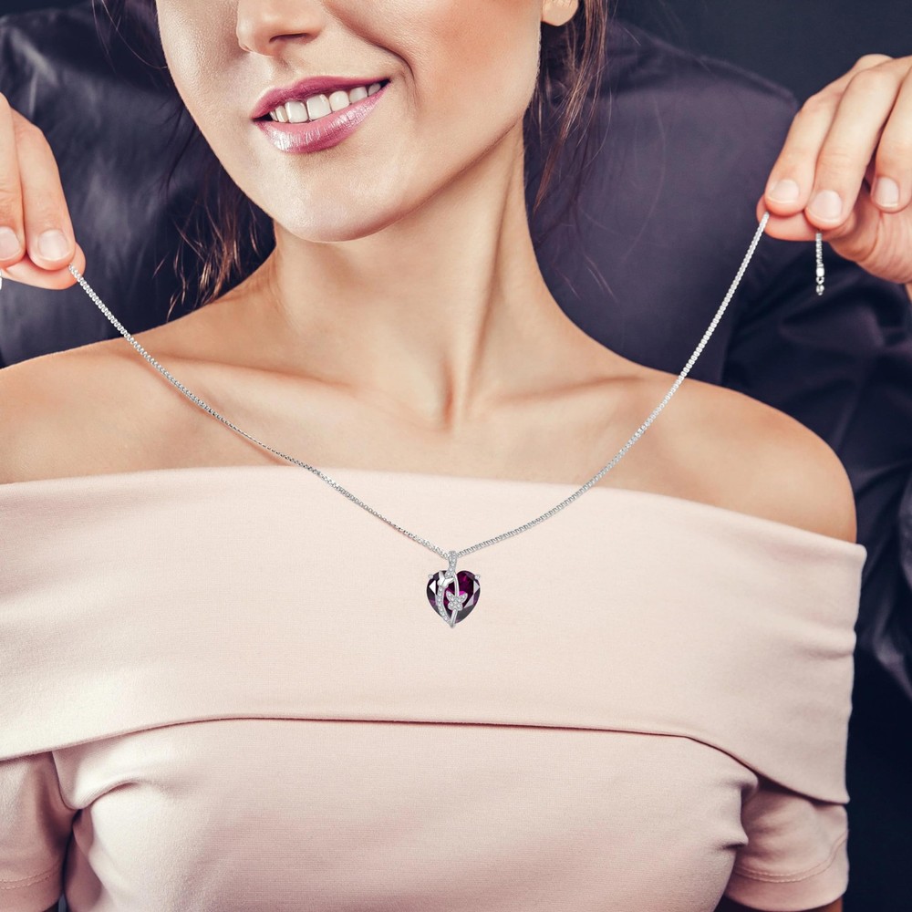 $ 71.87S925 Silver Rose Gold Heart Birthstone Necklaces for Women,Ideal Anniversary ...