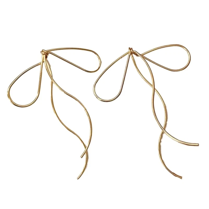 Features: These trendy bowknot earrings will make you stand out from the crowd. for adding a touch of to any outfit. Crafted from high alloy, these earrings are durable and long lasting. The golden color metal line adds a touch of sophistication. Designed for individuals who appreciate simple yet stylish accessories. These earrings are for those who want to show their unique fashion Whether it's a party, wedding, birthday, anniversary, or just daily wear, these earrings are versatile enough to be worn on any occasion. They will instantly elevates your look and make you feel confident and beautiful. Add a touch of vintage charm to your jewelry collection with these elegant earrings. Their attention to detail and stylish craftsmanship make them a must have accessory for any fashion enthusiast. Specifications: Alloy Color:Gold Weight:Approx.4 Size:Approx.4x5cm/1.57x1.96inch Package Includes: 1 Pair Earrings note: 1.Please allow 1-2cm errors due to manual measurement, make sure that you do not mind before you order. 2.Due to the difference between different monitors, the picture may not reflect the actual color of the item.
