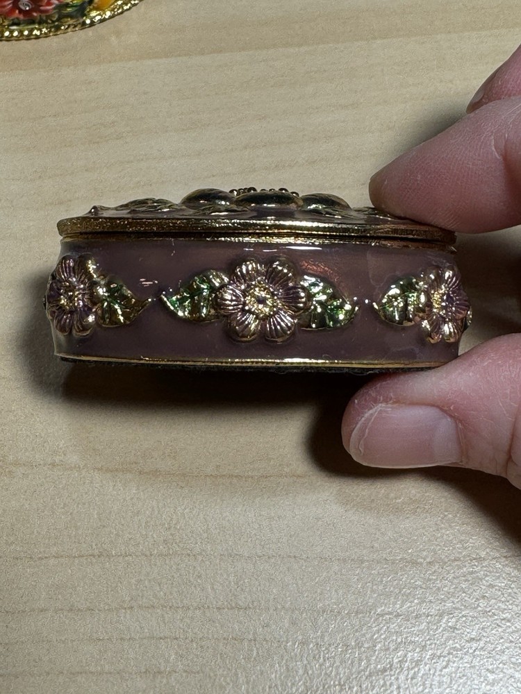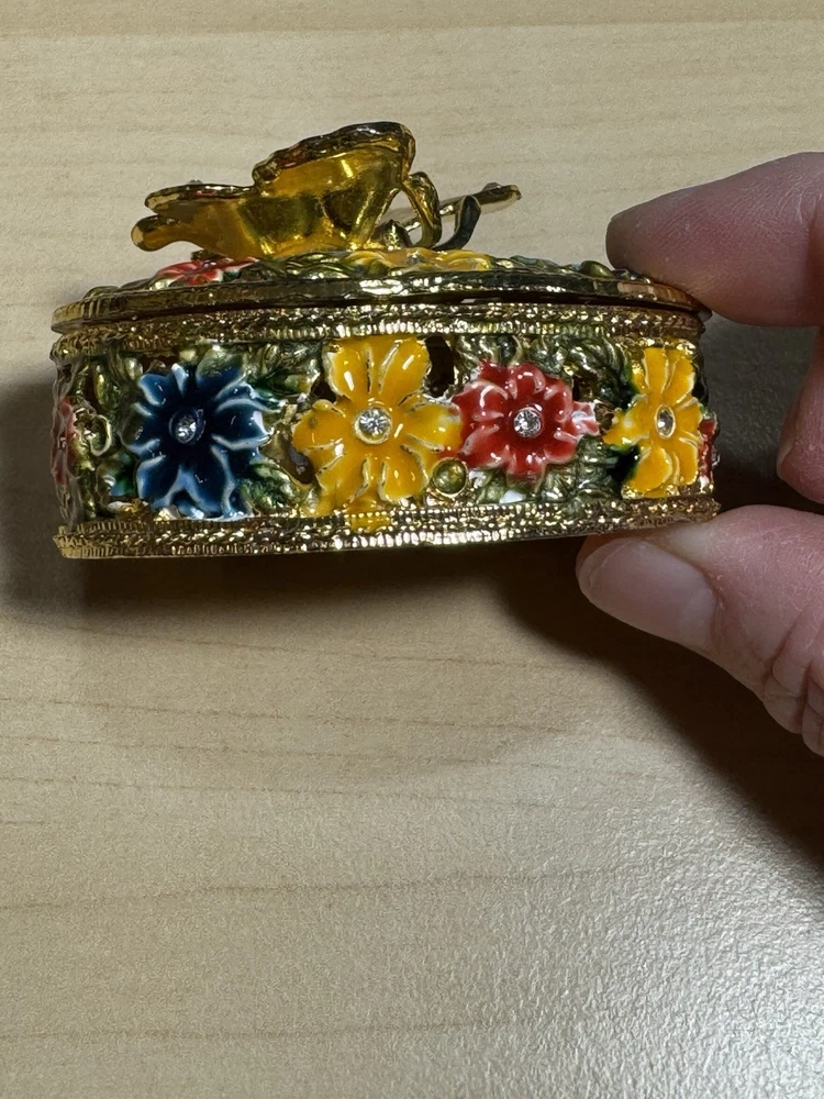 Butterfly Rhinestone Floral Enamel Gold Ring Box Trinket Holder