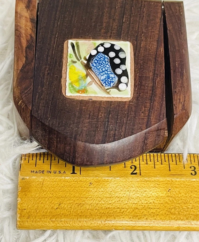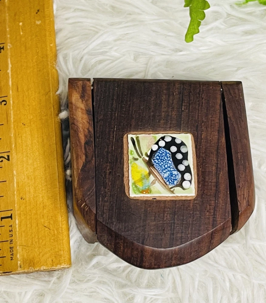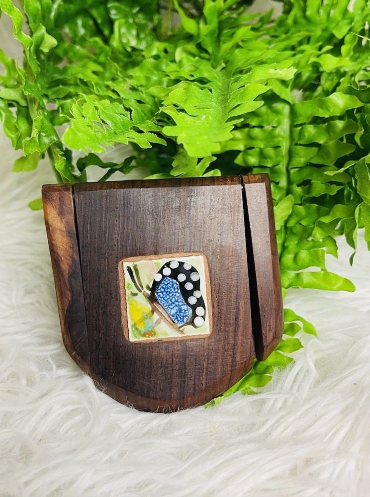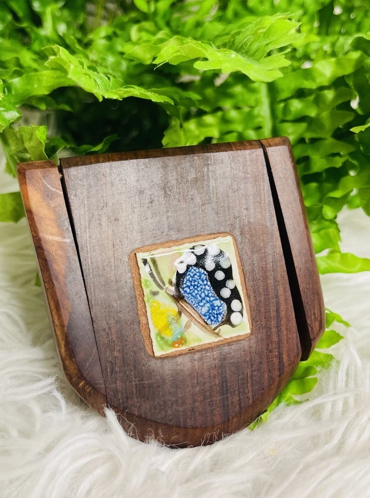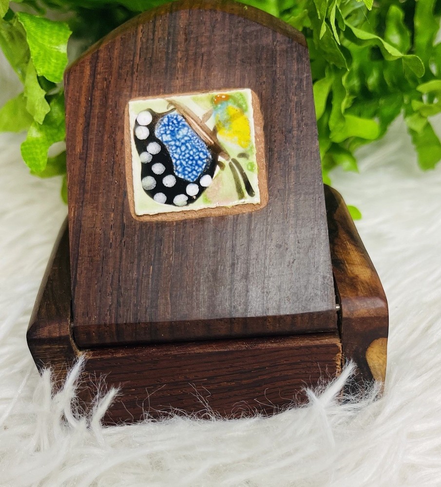 The Butterfly Tile Trinket Box is a beautiful wooden jewelry box holder that is perfect for storing small trinkets and jewelry. The box features a delicate butterfly design, making it a charming addition to any collection or decorative display. Packaged in a box, this unique trinket box is made of wood and is suitable for storing tiles, adding a touch of elegance to any space. May have minor imperfections Spots scuffs or scrapes *Please check photos for details and condition