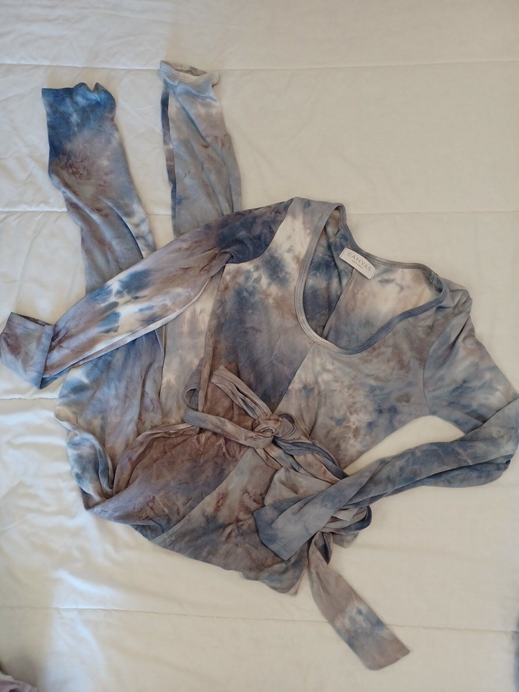 Buttery Soft Cat Body Suit Sky Plum Blue Large.L. Ribbon to tie on front or back.
