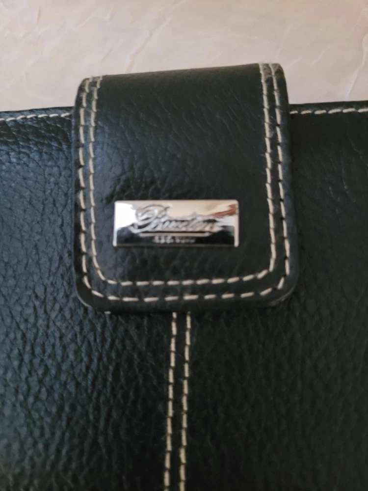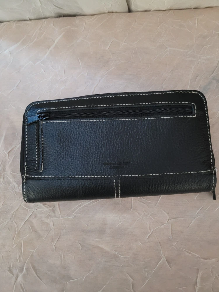 This Buxton black leather wallet is a must-have for any woman who wants to stay organized while on the go. With a zip-around style, this wallet is both stylish and practical. It features multiple pockets for credit cards, a coin keeper, a driver's license pouch, a pen pouch, a picture holder, and a folding design for cash. Measuring 7 inches in length and 4 inches in width, this wallet is the perfect size for everyday use. Plus, it's handmade with high-quality leather, ensuring that it will last for years to come. Whether you're running errands or going on a night out, this Buxton wallet has everything you need to stay organized and stylish. This piece appears to have been very lightly used. Please see pictures as they are worth a thousand words and are part of the description.