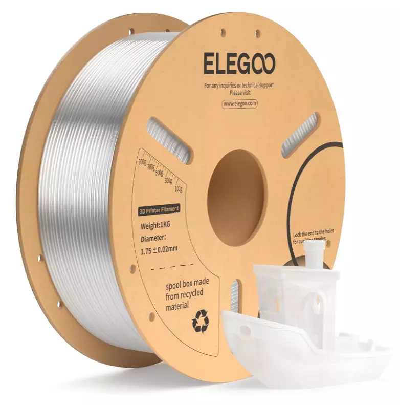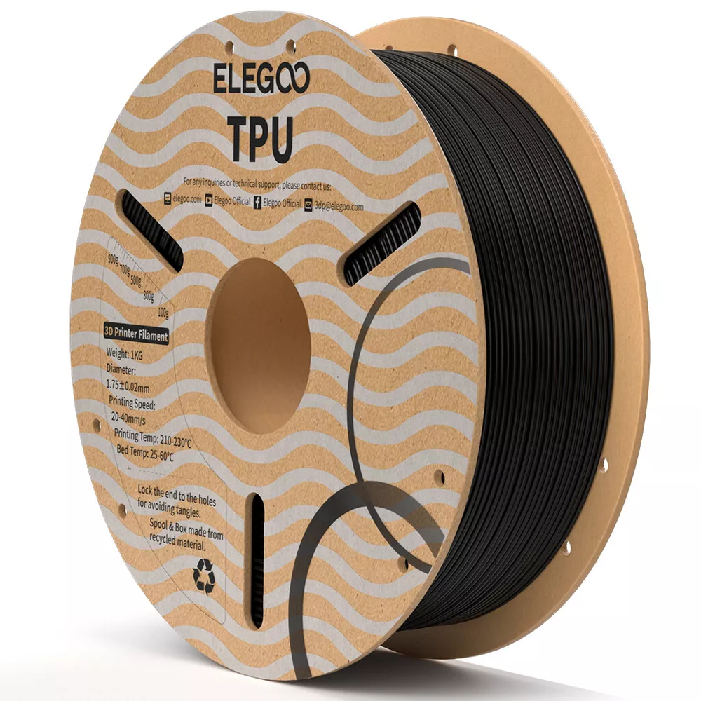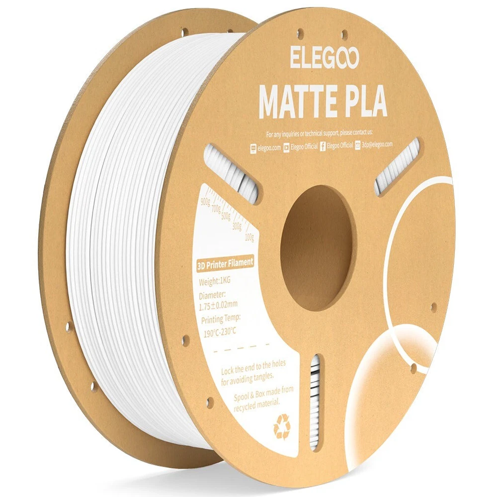 ELEGOO PLA Filament 1.75mm 3D Printer Filament Dimensional Accuracy +/- 0.02mm, Compatible with Most FDM Printer 【High-Quality PLA Filaments】 Made of high-quality PLA, a commonly used thermoplastic material features lower melting temperature and ease of use, low warp and shrinkage, odorless during printing, and provides a glossy surface finish. 【Clog-Free & Bubble-Free】 Designed and manufactured with clog-free, superb layer bonding and great fluidity for smooth and stable extrusion. Complete dried for 24 hours before packaging and vacuum sealed with desiccants in the bag to protect the filament from moisture, no clogging and bubbling problems. 【Dimensional Accuracy & Consistency】 Strict tolerances guarantee these PLA filaments of 1.75 mm diameter much smoother and more stable printing with the dimensional accuracy of +/- 0.02 mm; 1 kg spool (2.2lbs). 【Less-tangle and Easy to Use】 Full mechanical winding and strict manual examination to ensure that the line is neatly arranged and less tangled, and to avoid possible snap and line breaking. A larger spool inner diameter design for easy feeding. 【Wide Compatibility】 Universal compatibility with most of the common 1.75mm FDM 3D printers on the market due to the high-quality standards in terms of manufacturing accuracy and a small dimensional tolerance of +/- 0.02mm. Technical Specifications Density: 1.20g/Cm³ Melt Index: 14(190°C/2.16kg)G/10min Tensile Strength(X-Y): ≥ 50mpa Elongation At Break(X-Y): 11.2% Bending Strength: 91mpa Bending Modulus: 1913mpa Charpy Impact Strength: 5.4kj/M² Thermal Deformation Temp: 53°C(0.45mpa) Fan: 100% Line Length: (1.75mm) 330-335m Rockwell Hardness: 88 Print Layer Thickness: 0.2mm Recommended Extrusion/Nozzle Temp: 190~220°C(Recommended 205°C) Recommended Heated Bed Temp: 50-65°C Printing Speed: 30-70mm/S Recommendation Platform: PEI/Glass/Fiberglass Board+Pvp Glue Stick Or Textured Paper PLA+ FILAMENT Specially Design for 3D Printing Technical Specifications Density: 1.25g/Cm³ Melt Index: 10(190°C/2.16kg)g/10min Tensile Strength(X-Y): ≥ 60mpa Elongation At Break(X-Y): 23 % Bending Strength: 80mpa Bending Modulus:1911 mpa Charpy Impact Strength:9 j/M² Thermal Deformation Temp: 53°C(0.45mpa) Fan: 100% Line Length: (1.75mm) 330-335m Rockwell Hardness: 88 Print Layer Thickness: 0.2mm Recommended Extrusion/Nozzle Temp: 200~230°C(Recommended 215°C) Recommended Heated Bed Temp: 50-65°C Printing Speed: 30-70mm/S Recommendation Platform: PEI/Glass/Fiberglass Board+Pvp Glue Stick Or Textured Paper PAPID PLA+ FILAMENT Specially Design for High Speed 3D Printing 【Less-tangle & Neatly Wound】 Full mechanical winding and strict manual inspection ensures that all high-speed pla plus filaments are neatly wound, which effectively reduces tangles, snap and line breakage issues 【30-600mm/s Printing Speed】 With enhanced fluidity, ELEGOO Official Store UK RAPID PLA+ filament melts rapidly and flows smoothly, allowing for up to 600mm/s fast printing speed. You can complete the projects quickly without compromising on quality 【Enhanced Strength & Toughness】 ELEGOO Official Store UK RAPID PLA plus filament features high flexural modulus and elongation at break, which makes it resistant to brittleness and cracking, bringing excellent results for printing functional parts 【Top-Notch Accuracy & Consistent】 Precise production process guarantee the filament of 1.75mm diameter, accuracy of +/- 0.02mm. Strict tolerances and perfect dimensional accuracy ensure smooth and consistent feeding for filaments 【For Most 3D Printers】 Rapid PLA+ filament fit for both regular printers and high speed printers, perfectly for most high speed printer such as Neptune 4, Neptune 4 pro, K1, K1 Max, Ender 5 series, Kobra 2, M5, M5C and more Technical Specifications Density: 1.20g/Cm³ Melt Index: 8.2(190°C/2.16kg)g/10min Tensile Strength(X-Y): ≥ 60mpa Elongation At Break(X-Y): 19% Bending Strength: 80mpa Bending Modulus: 2680mpa Charpy Impact Strength: 3.85kj/M² Thermal Deformation Temp: 53°C(0.45mpa) Fan: 100% Line Length: (1.75mm) 330-335m Rockwell Hardness: 88 Print Layer Thickness: 0.2mm Recommended Extrusion/Nozzle Temp: 200~230°C(Recommended 205°C) Recommended Heated Bed Temp: 40-60°C Printing Speed: 30-600mm/S Recommendation Platform: PEI/Glass/Fiberglass Board+Pvp Glue Stick Or Textured Paper PAPID PLA+ FILAMENT Specially Design for High Speed 3D Printing 【Less-tangle & Neatly Wound】 Full mechanical winding and strict manual inspection ensures that all high-speed pla plus filaments are neatly wound, which effectively reduces tangles, snap and line breakage issues 【30-600mm/s Printing Speed】 With enhanced fluidity, ELEGOO Official Store UK RAPID PLA+ filament melts rapidly and flows smoothly, allowing for up to 600mm/s fast printing speed. You can complete the projects quickly without compromising on quality 【Enhanced Strength & Toughness】 ELEGOO Official Store UK RAPID PLA plus filament features high flexural modulus and elongation at break, which makes it resistant to brittleness and cracking, bringing excellent results for printing functional parts 【Top-Notch Accuracy & Consistent】 Precise production process guarantee the filament of 1.75mm diameter, accuracy of +/- 0.02mm. Strict tolerances and perfect dimensional accuracy ensure smooth and consistent feeding for filaments 【For Most 3D Printers】 Rapid PLA+ filament fit for both regular printers and high speed printers, perfectly for most high speed printer such as Neptune 4, Neptune 4 pro, K1, K1 Max, Ender 5 series, Kobra 2, M5, M5C and more Technical Specifications Density: 1.20g/Cm³ Melt Index: 8.2(190°C/2.16kg)g/10min Tensile Strength(X-Y): ≥ 60mpa Elongation At Break(X-Y): 19% Bending Strength: 80mpa Bending Modulus: 2680mpa Charpy Impact Strength: 3.85kj/M² Thermal Deformation Temp: 53°C(0.45mpa) Fan: 100% Line Length: (1.75mm) 330-335m Rockwell Hardness: 88 Print Layer Thickness: 0.2mm Recommended 
