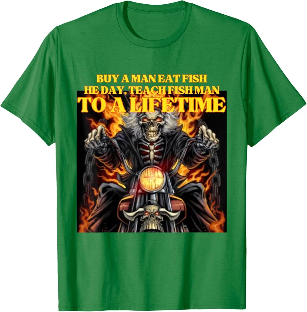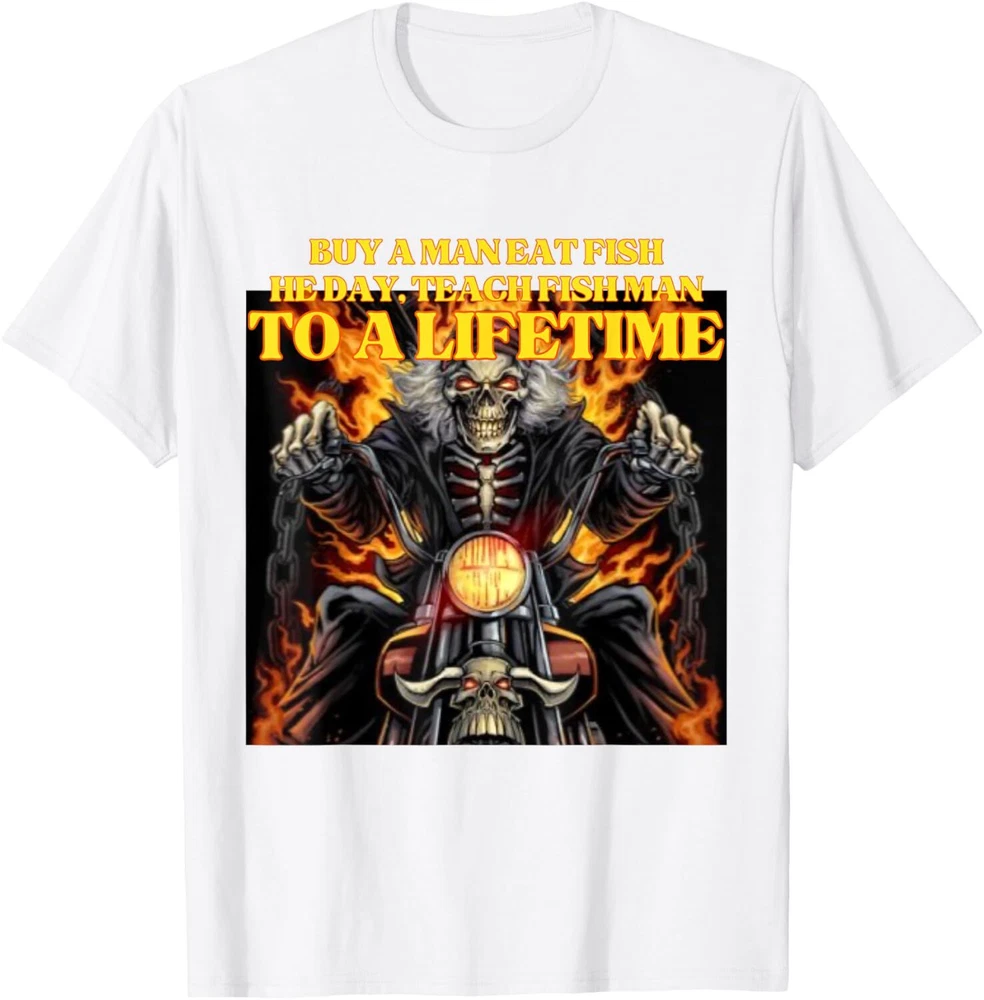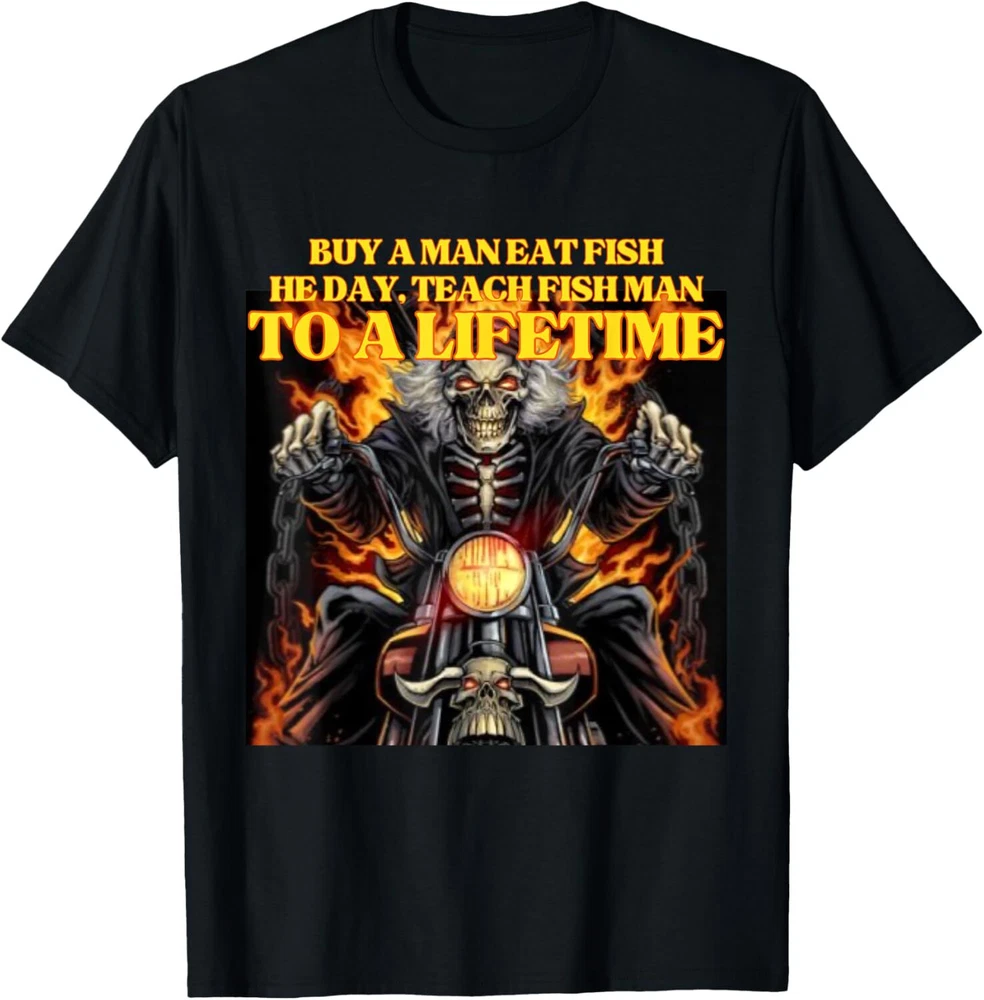 Buy A Man Eat Fish Wrong Funny Hard Skeleton Meme T-Shirt Hoodie