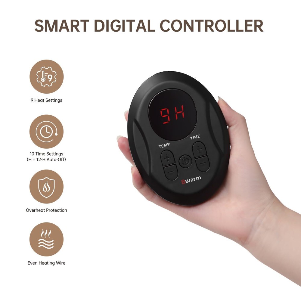 SIZE: Twin XL Size, 39"W x 80"L, 18'' deep and 360°all around elastic pocket helps mattress pad fit your bed. PREMIUM QUALITY: Our heated mattress pad is both skin-friendly and crafted with premium breathable knitted materials to ensure the health and superior high quality sleep. Made of 100% polyester. SMART DIGITAL CONTROL: 10 time settings provide 1-9 and H (represents for 12 hour) auto-off safety timer. Intelligent heating elements with ultra low electro magnetic field (EMF) ETL certified. CUSTOMIZABLE WARMTH: 9 heat settings provide a warm and comfortable sleep for your desired warmth. 5 YEAR WARRANTY: Bwarm heated mattress pads are safe and reliable made to provide highest safety and carry a 5 YEAR WARRANTY. Machine washable to maintain your blankets fresh and hygienic for years to come.