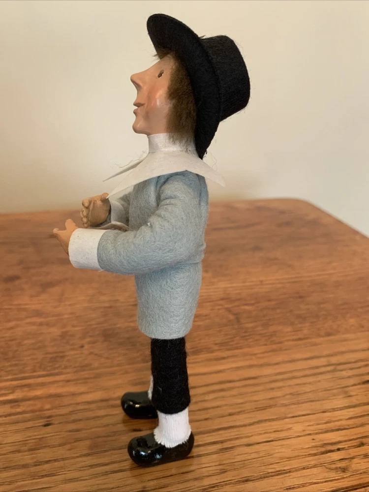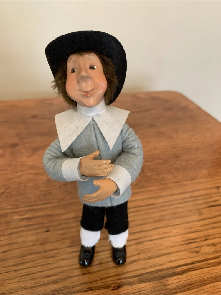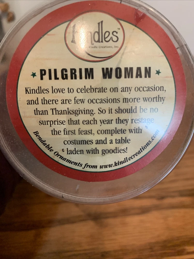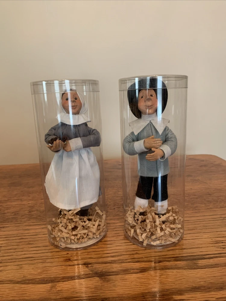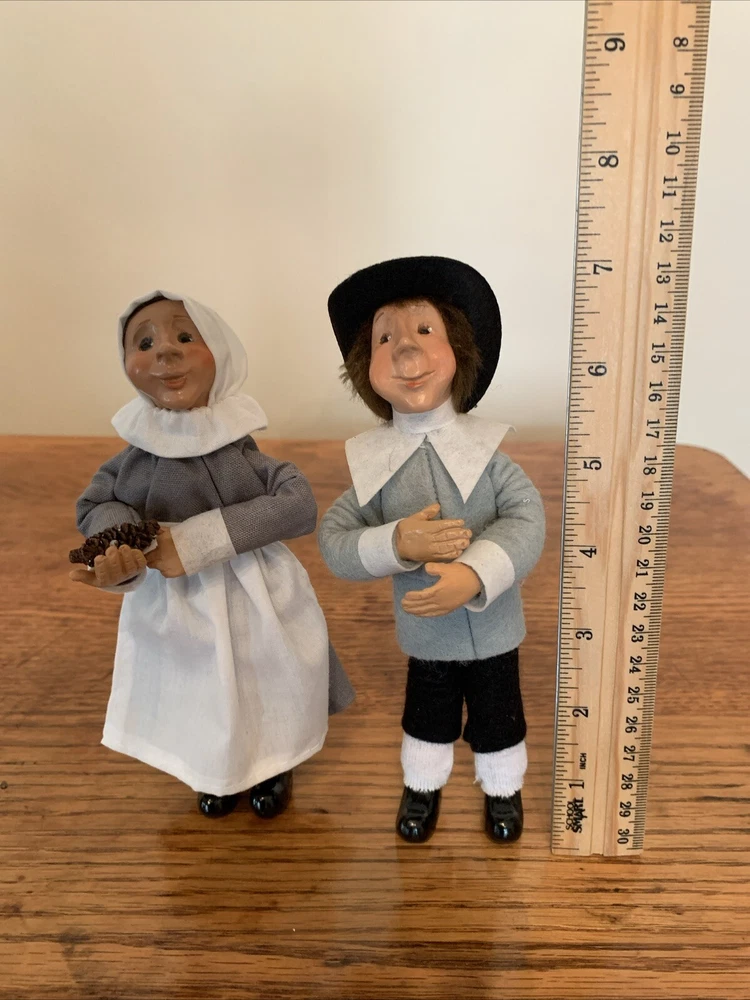 Byers’ Choice Kindles Pilgrim Man and Woman in good used condition. They are almost 7” tall. Bendable. Perfect decoration for the holidays.