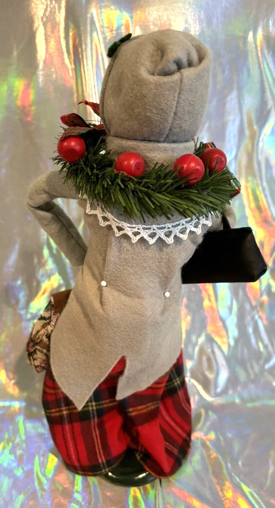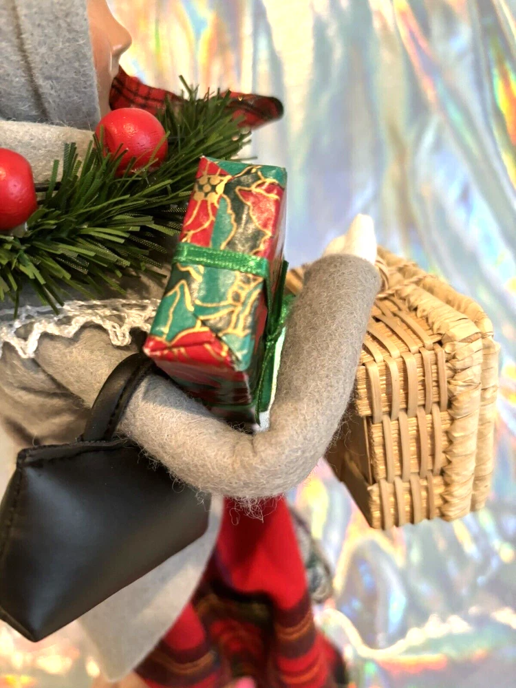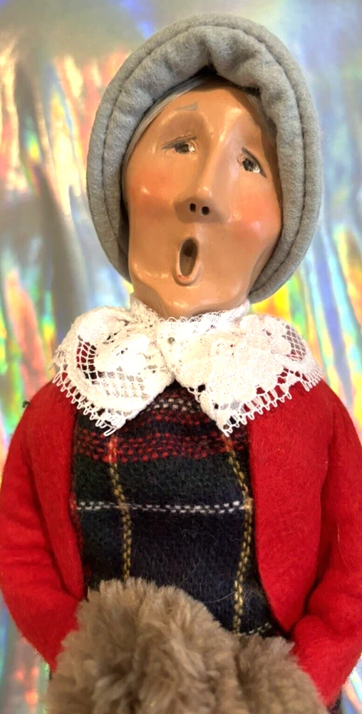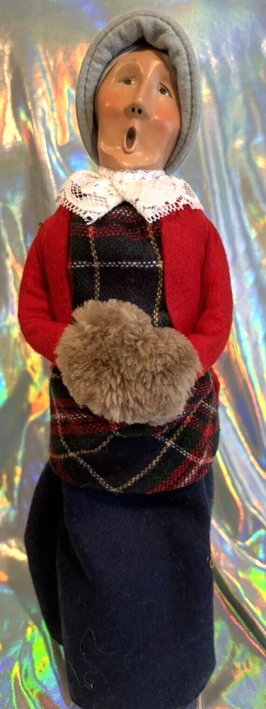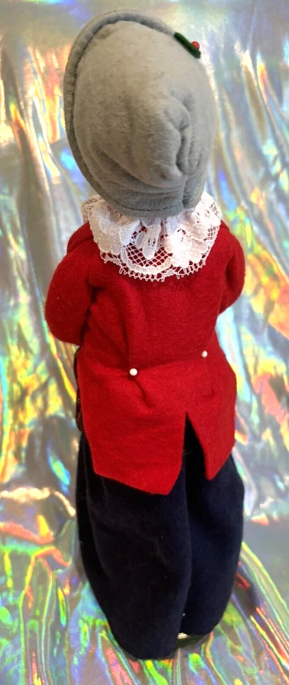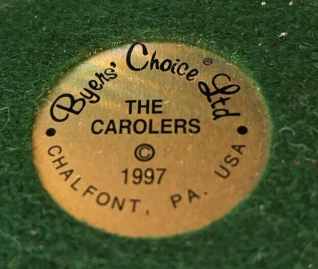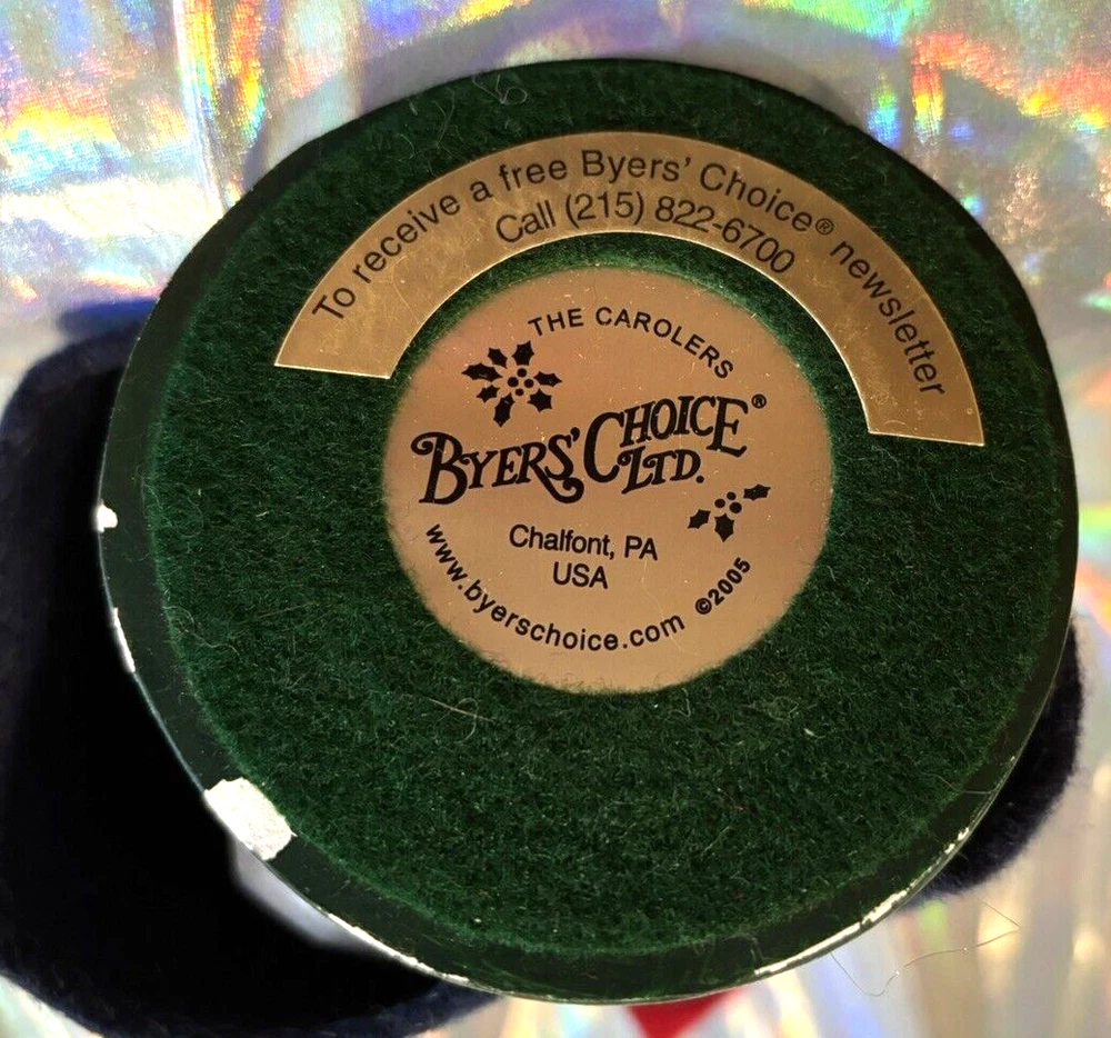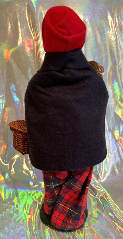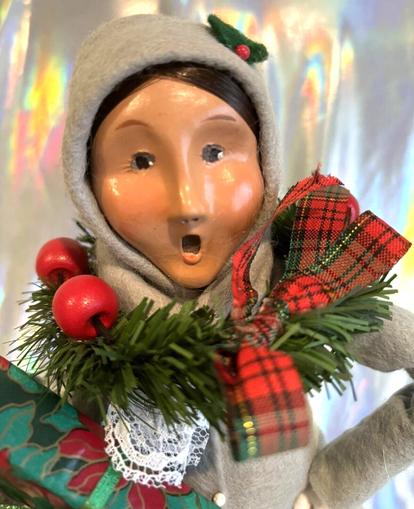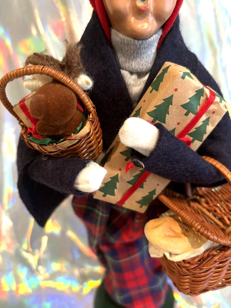 This beautiful Byers' Choice figurine lot features three Victorian ladies with gifts, including one with a muff. From the Carolers collection. The intricate details and original design make this a perfect addition to any Christmas decor or collection. The figurines are perfect for collectors or as a special holiday gift. Tallest is 13.5" high. Made in the U.S.A. Good previously owned condition. Woman with muff has some wear on bottom of stand, just slightly seen when on display - please see last 3 photos. Woman with package and baskets made in 1997, woman with bag - 2001.