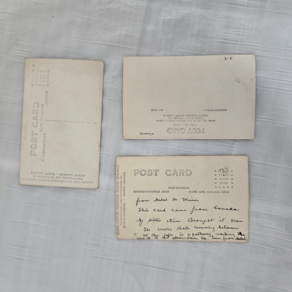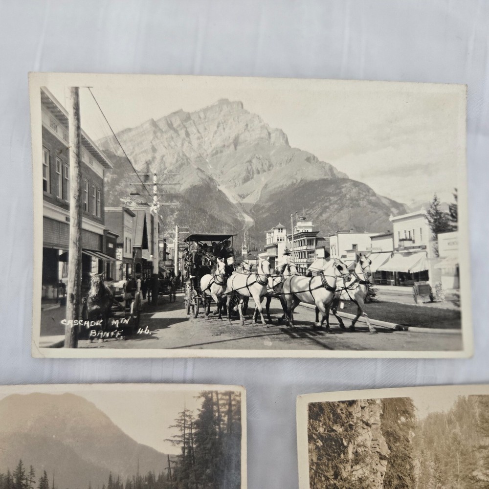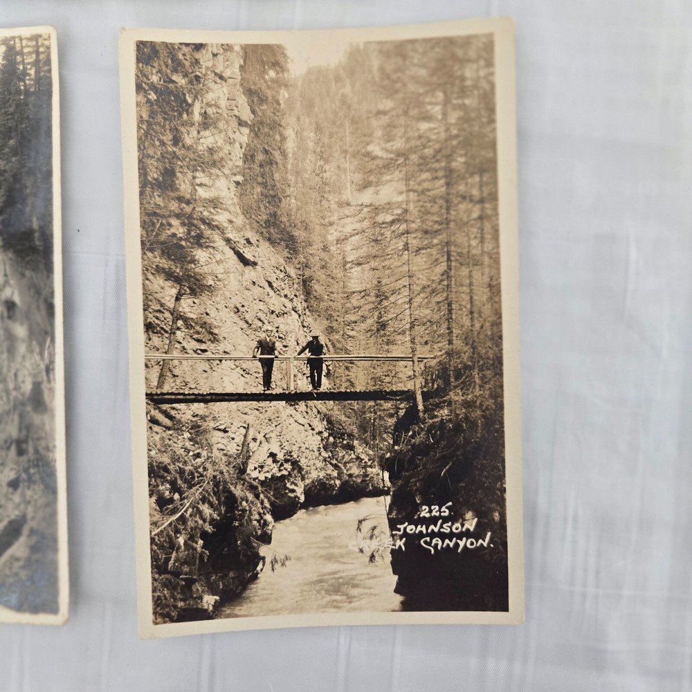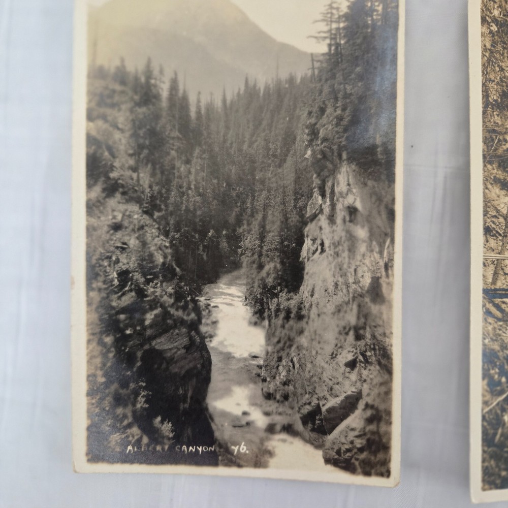 Set of 3 RPPC Byron Harmon CPR in Banff B.C Canada Real Photo. In fine condition, unused, one has writing on the back . -Cascade Mountain Banff #46, -Johnson Creek Canyon # 225 and Albert Canyon # 76 ( this one has writing on the back)