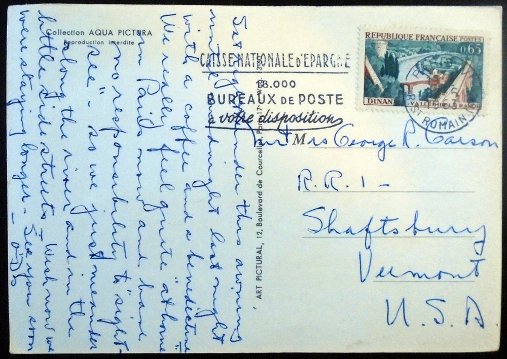 C10345. CATEGORY: Art & Artists – Collection AGUA PICTURA. TYPE: 4 x 6 Color Postcard – Continental DESCRIPTION: Saint-Germain-des-Pres is one of the four administrative quarters of the 6th arrondissement of Paris, France, located around the church of the former Abbey of Saint-Germain-des-Pres. In the view can be seen the Abbey of Saint-Germain-des-Pres. CONDITION: Card was mailed in 1963 with French pictorial stamp . Minor corner and edge wear. Light soiling and age tanning. Very Good condition. Sold AS IS. Look carefully at the pictures to Judge Condition for Yourself . Please pay for your order after Combining ALL ITEMS on one invoice! This saves both of us money! You save on S/H charges and I save on fees! If you plan to purchase multiple items, just put all the items you want into your Ebay cart, then press “REQUEST TOTAL” and I will be able to invoice you with combined shipping. Make sure you’re purchasing via computer, as this option is not available when buying with your phone. Once you have purchased an item and we have wrapped it for shipping, additional items CANNOT be added, and must be shipped separately. All postcards, vintage paper items and historical memorabilia are packaged with cardboard.
