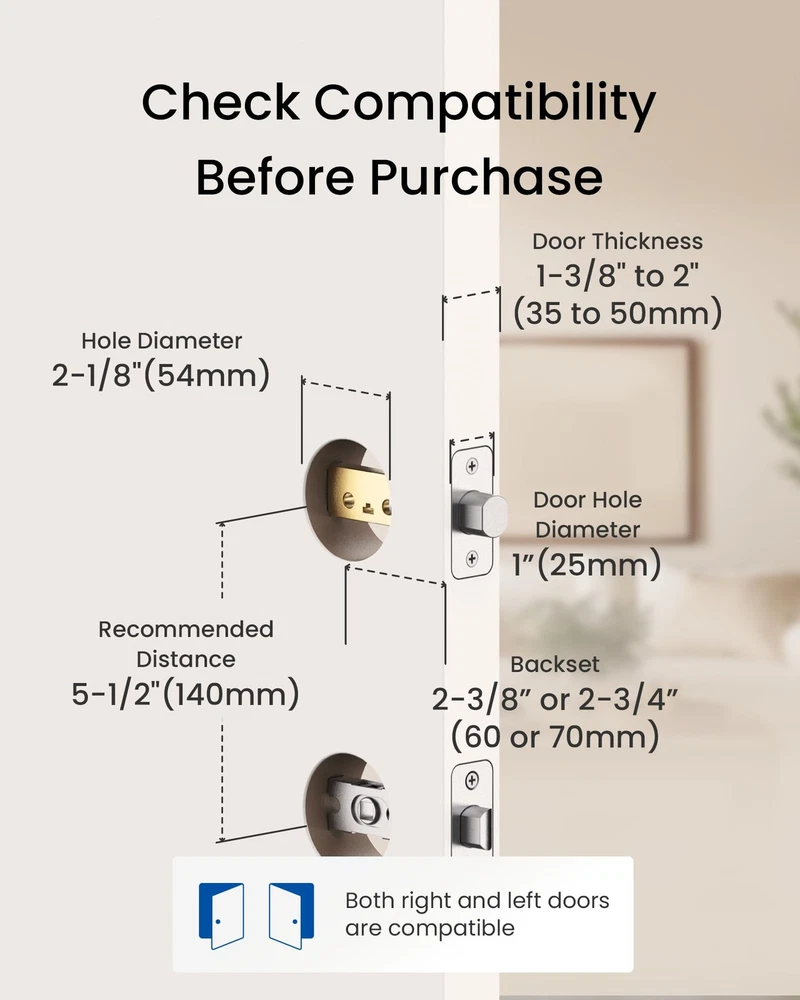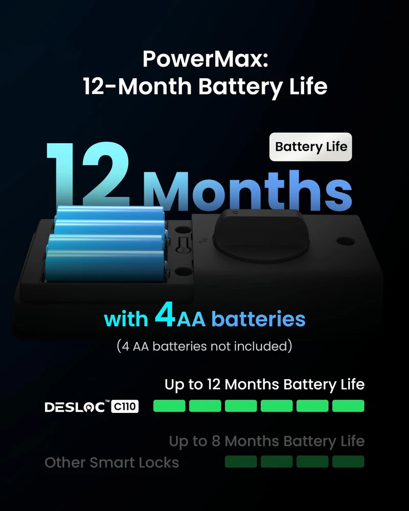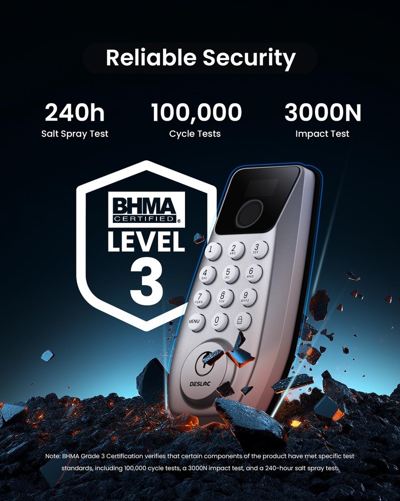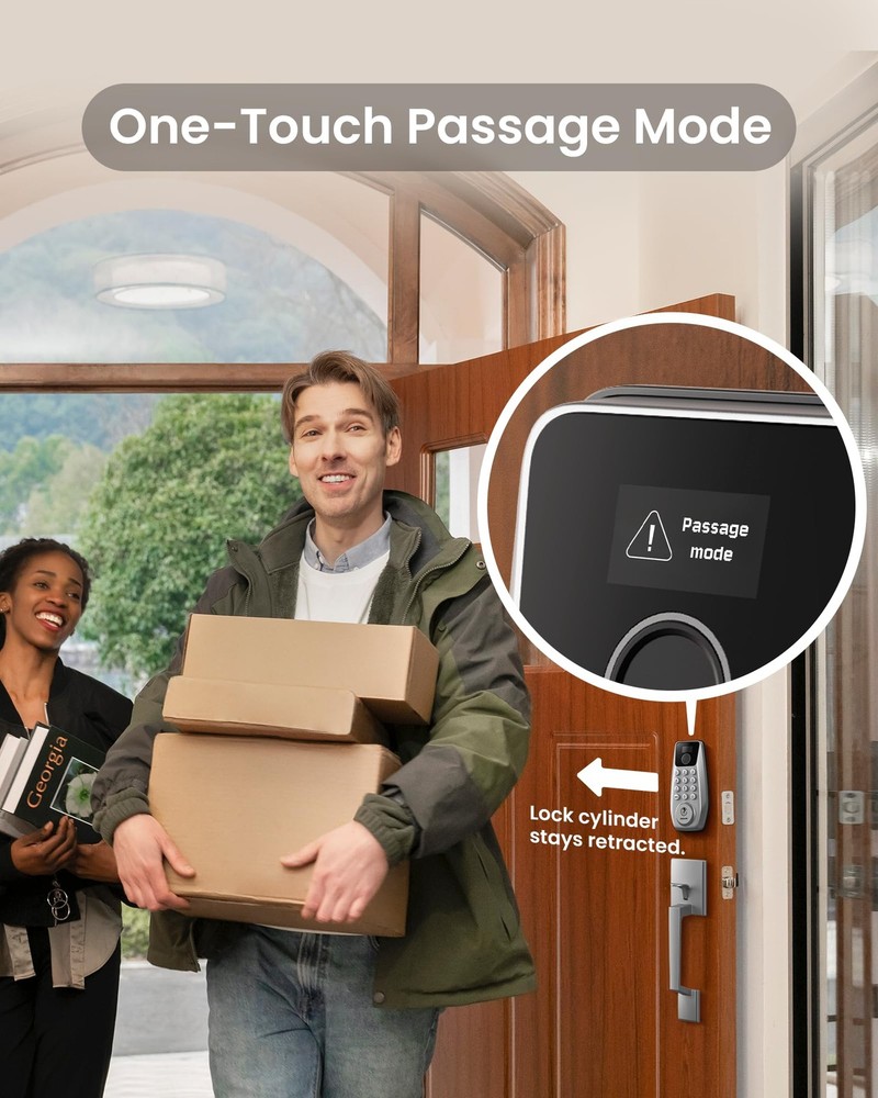 ๐๐จ๐๐ค๐๐ฎ๐ ๐๐ข๐ฌ๐ฉ๐ฅ๐๐ฒ: Manage settings, set passcodes, assign users, and view alerts on a smart lock with a built-in display that provides a clear overview. No internet connection is required ๐-๐ข๐ง๐ ๐๐๐ฒ๐ฅ๐๐ฌ๐ฌ ๐๐ง๐ญ๐ซ๐ฒ๏ผ Unlock with fingerprint, passcode, or physical key for ultimate convenience and security. With FlashPrint Algorithm, the door lock recognizes your fingerprints in under 0.3 seconds, storing up to 50 fingerprints. Trusted by millions of users ๐๐ซ๐๐ฆ๐ข๐ฎ๐ฆ ๐๐๐๐ฎ๐ซ๐ข๐ญ๐ฒ: This smart lock for front door is BHMA Grade 3 certified with a robust lock cylinder, IP54, anti-peeping PIN code protection, and auto-lock. The FingerShield system protects your biometric data from duplication and remote attacks ๐๐-๐๐จ๐ง๐ญ๐ก ๐๐๐ญ๐ญ๐๐ซ๐ฒ ๐๐ข๐๐: The C110 smart lock is equipped with the PowerMax smart power management system, ensuring up to 12 months of battery life. It features a built-in low-battery indicator and a Type-C emergency power port. *Battery life may vary depending on usage frequency ๐๐๐ฌ๐ฒ ๐๐ง๐ฌ๐ญ๐๐ฅ๐ฅ๐๐ญ๐ข๐จ๐ง ๐๐ง๐ ๐๐ฑ๐๐๐ฅ๐ฅ๐๐ง๐ญ ๐๐ฎ๐ฌ๐ญ๐จ๐ฆ๐๐ซ ๐๐๐ซ๐ฏ๐ข๐๐: Install the front door lock in minutes with just a screwdriver and automatic door swing direction detection. The interior lock back cover with adhesive allows for hands-free setup. offers a 1-year product warranty and lifetime after-sales service. Contact us via hotline (Mon-Fri, 9am-5pm EST) or 24/7 email support
