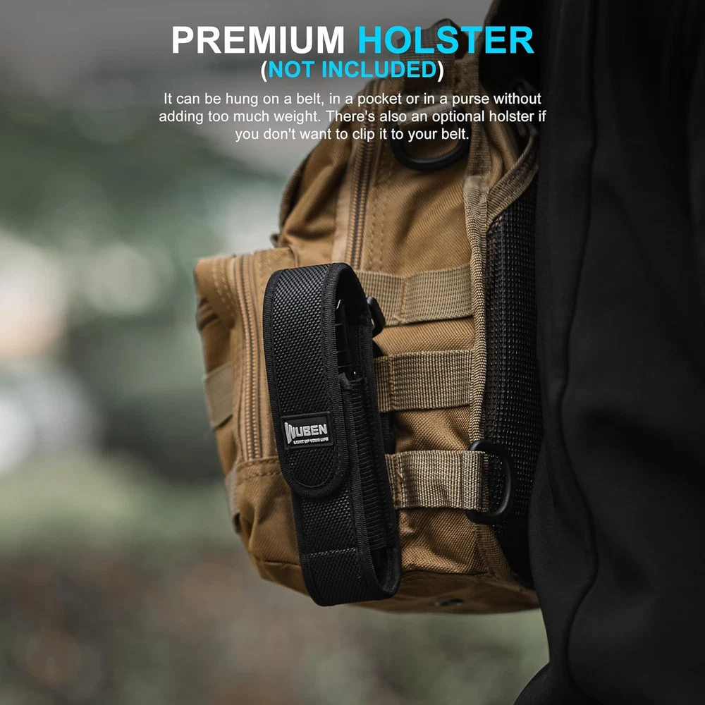 Super Bright 6 Modes: WUBEN C3 is a new release EDC flashlight, which utilizes Germany imported P9 LED, emits bright light up to 1200 lumens and reaches nearly 588 ft. Featured with 6 adaptable light modes: High, Medium, Low, Eco, Strobe, OS(With memory function), last as long as 143 hours (Eco) High Transmittance TIR Lens and Unique Lamp head : The light transmittance reaches 92-93%, which is the best. It has outstanding aging resistance and is often used as an outdoor material. Pretty and unique head design allows you easy to distinguish whether the flashlight is turned on or not when it's standing Type-C Rechargeable and Indicator: WUBEN C3 has built-in TYPE-C charging port (included). It features anti-reverse installation function protected circuit to ensure you have quality light and safety. Indicator shows you the electricity. When the power is less than 15%, the indicator will keep flashing red. It also indicates charging status. Full is blue, charging is red Solid Build & Durable: The rechargeable flashlight body is made of hard anodizing aircraft grade 6063 aluminum alloy, its IP68 water resistance and 1.5 meters impact resistance make the flashlight endure rough handling and harsh weather Best for Everyday Carry: The pocket flashlight is 4.78 in long, weighs 4.34 oz, its pocket size makes it great for everyday carry. The pocket clip and lanyard of the flashlight make it very convenient to carry with you. And there is optional flashlight holster in our store, multiple ways for carrying to choose Product Description LED FLASHLIGHT EXTREMELY BRIGHT OUTDOOR *Notice: The full press of the button is for power on and off only. Gently press the power button to cycle through the modes. TYPE-C CHARGING Fast charging, built-in protective plate design, safer to use. 1,200 HIGH LUMENS FLASHLIGHT This P9 lamp bead is well known for its high quality, high performance and reliability. 6 MODES Last as long as 143 hours (Eco). 1 IP68 Waterproof 2 Small Size 3 Widely used 4 Parameter 5 Optional bag Why is the brightness so dim? WUBEN C3 is control by one tail button to trunning on/off and switching the modes. *Notice: The full press of the button is forpower on and off only. Gentiy dgress thepower button to cycle through the modes. Why does the flashlight have poor contact after replacing other battery? Because the battery we use in WUBEN is a battery with a 0.05mm charging protection board (size: 18x70mm), which can increase the safety and service life of the battery. Why can't C3 charge? (After removing the insulation sheet on the battery back cover) After plugging in the power supply, wait for 3-4 seconds before the light turns on (you can try changing the data cable or plugging it into a computer. Due to voltage, it is suitable for 5V/2A)