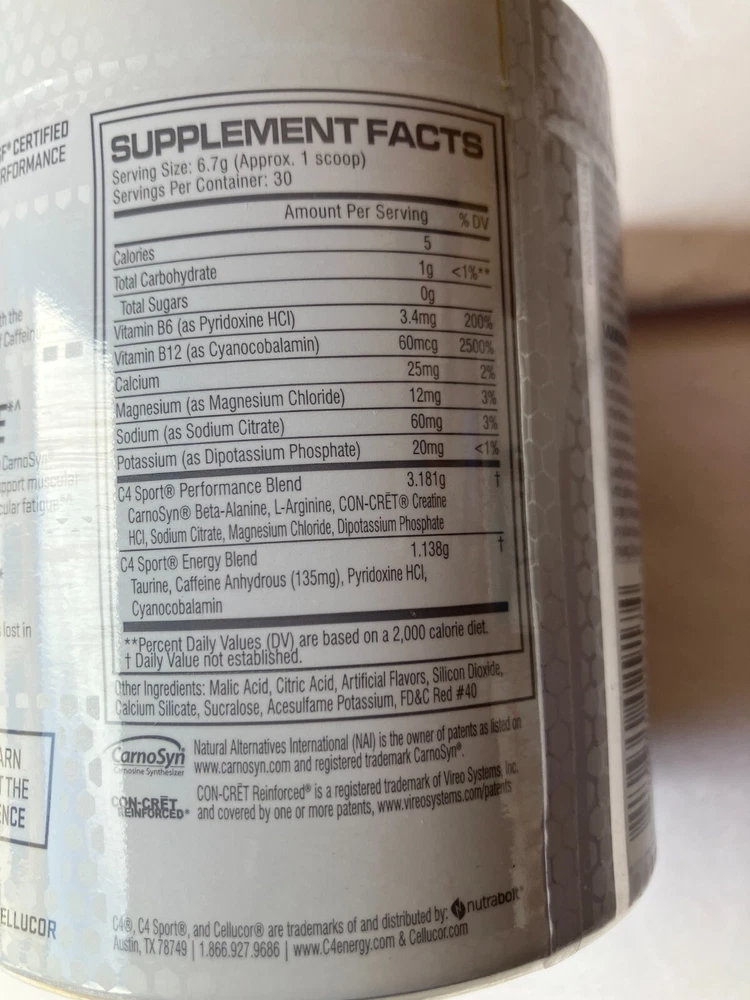 C4 Sport Pre Workout Powder Watermelon Flavor Supplement NSF Certified 7.1 oz Description C4 Sport Pre Workout Powder Watermelon Flavor Supplement NSF Certified 7.1 oz . Product Details Brand : Cellucor Formulation : Powder Volume: 7.1 oz Type : Supplement Please Message Me if You Have Any Questions