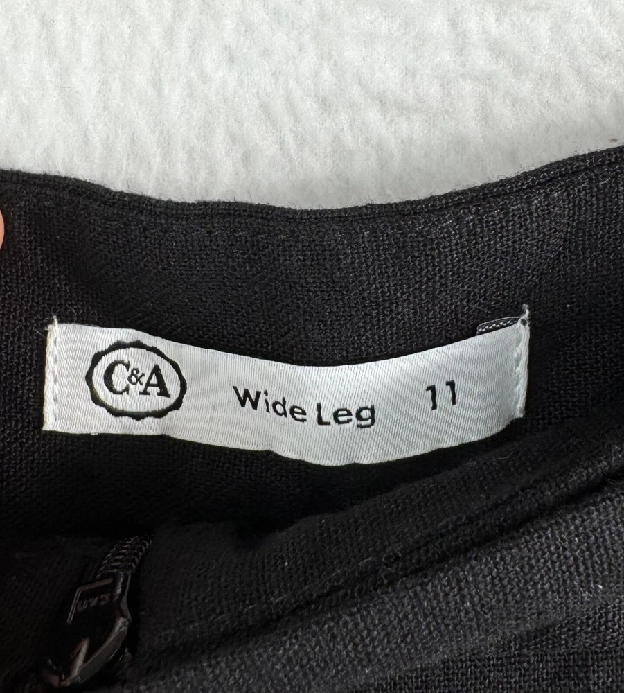 Good preowned condition "Timeless lagen-look style! C&A Canada Wide-Leg Linen Pants in classic black. Features a relaxed fit with button details and pleated accents for effortless sophistication. Perfect for casual or elevated outfits. Flat lay: waist 16" Rise 14" Inseam 27" Leg Opening 16" Cropped super wide pleated leg style, cool button detail on the front that goes over the front zipper 72% viscose 28% linen linen, wide leg, pleated, minimalist, casual, work wear, office, money, classic, flowy, boho, coastal, beachy, retro, lagen look, 90s, relaxed, high waist, chic, city PLEASE check all flat lay measurements and listings carefully BEFORE PURCHASE!I put in a lot of work into hand measuring and researching each items as best as I can! Thank you so much for your consideration! Please note that: RETURN SHIP FEE IS PAID BY THE BUYER! If you are not too familiar with flat lay measurements, I recommend taking a measurement of your own clothes that you feel comfortable and compare with the measurement I provide. For returns: The items MUST BE IN SAME CONDITION AS SOLD for full refund! We all don't like returns and let's work together to minimize! Please note that RETURNS ARE NOT ACCEPTED FOR NEW WITH TAG OR NEW WITHOUT TAG ITEMS!